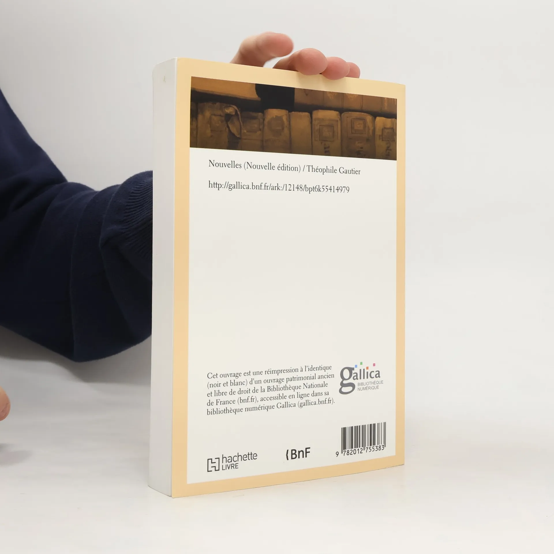 Nouvelles (Nouvelle edition) / Theophile GautierDate de l'edition originale : 1898Ce livre est la reproduction fidele d'une oeuvre publiee avant 1920 et fait partie d'une collection de livres reimprimes a la demande editee par Hachette Livre, dans le cadre d'un partenariat avec la Bibliotheque nationale de France, offrant l'opportunite d'acceder a des ouvrages anciens et souvent rares issus des fonds patrimoniaux de la BnF.Les oeuvres faisant partie de cette collection ont ete numerisees par la BnF et sont presentes sur Gallica, sa bibliotheque numerique.En entreprenant de redonner vie a ces ouvrages au travers d'une collection de livres reimprimes a la demande, nous leur donnons la possibilite de rencontrer un public elargi et participons a la transmission de connaissances et de savoirs parfois difficilement accessibles.Nous avons cherche a concilier la reproduction fidele d'un livre ancien a partir de sa version numerisee avec le souci d'un confort de lecture optimal. Nous esperons que les ouvrages de cette nouvelle collection vous apporteront entiere satisfaction.Pour plus d'informations, rendez-vous sur <a target="_blank" rel="noopener nofollow" href="http://www.hachettebnf.frhttp//gallica.bnf.fr/ark:/12148/bpt6k55414979">www.hachettebnf.frhttp://gallica.bnf....</a>