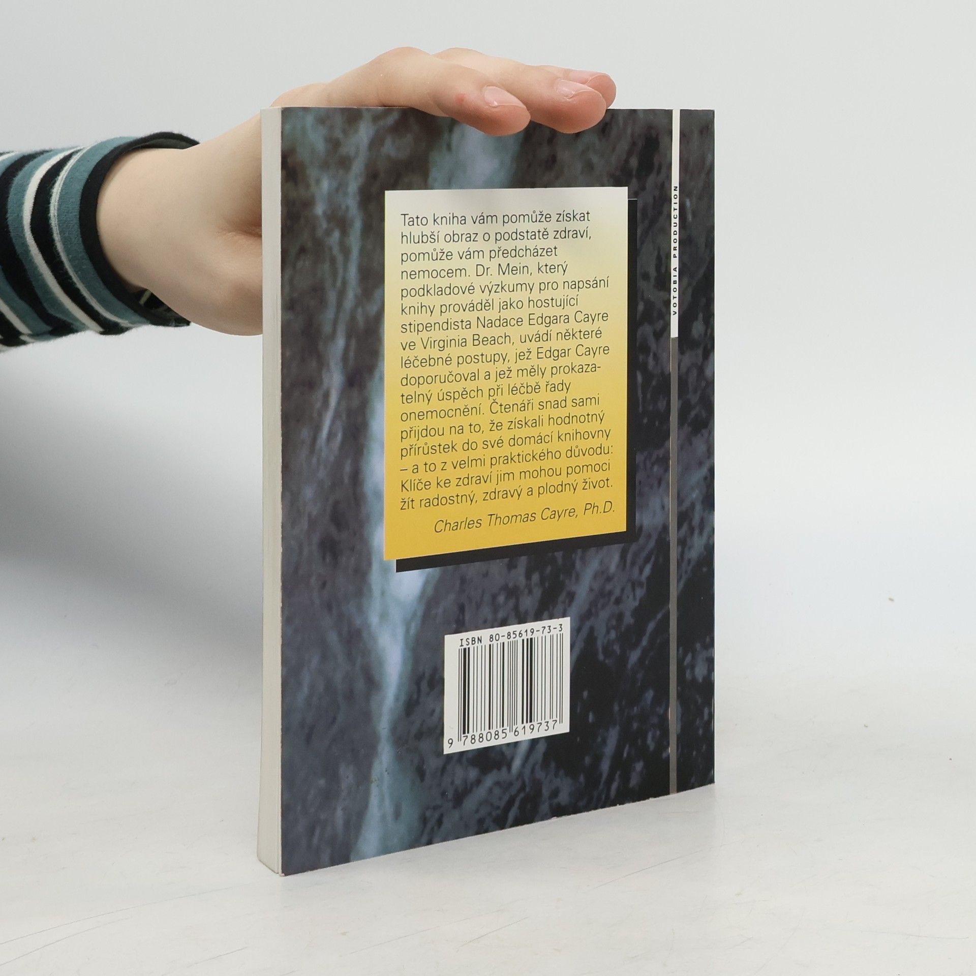 Zdraví a nemoc ve výkladu Edgara Cayce nejpečlivěji zdokumentovaného senzibila naší doby - tato kniha vám pomůže získat hlubší obraz o podstatě zdraví, pomůže vám předcházet nemocem. Dr.Mein, který podkladové výzkumy pro napsání knihy prováděl jako hostující stipendista Nadace Edgara Cayce, uvádí některé léčebné postupy, jež Edgar Cayce doporučoval a jež měly prokazatelný úspěch při léčbě řady onemocnění.