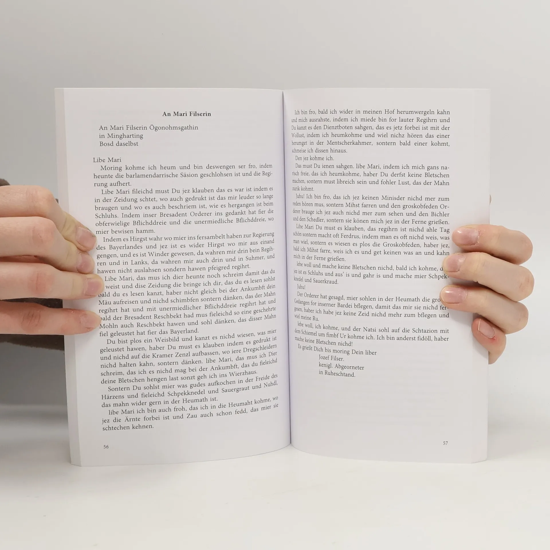 Briefwechsel eines bayrischen Landtagsabgeordneten: Erstdruck: München (Langen) 1909. Jozef Filsers Briefwexel. Zweites Buch: Erstdruck: München (Langen) 1912.