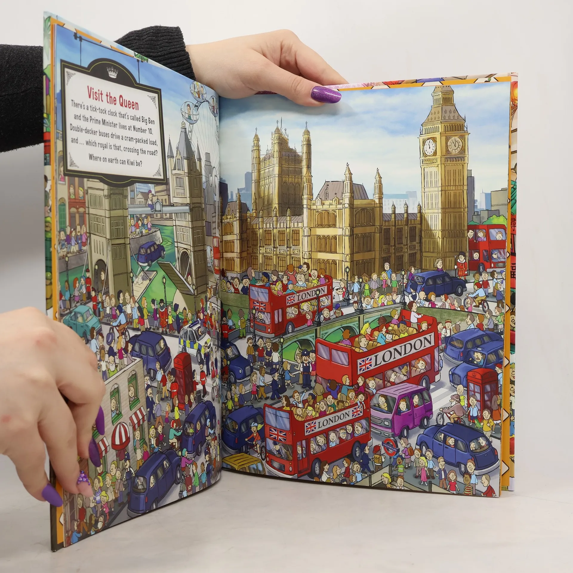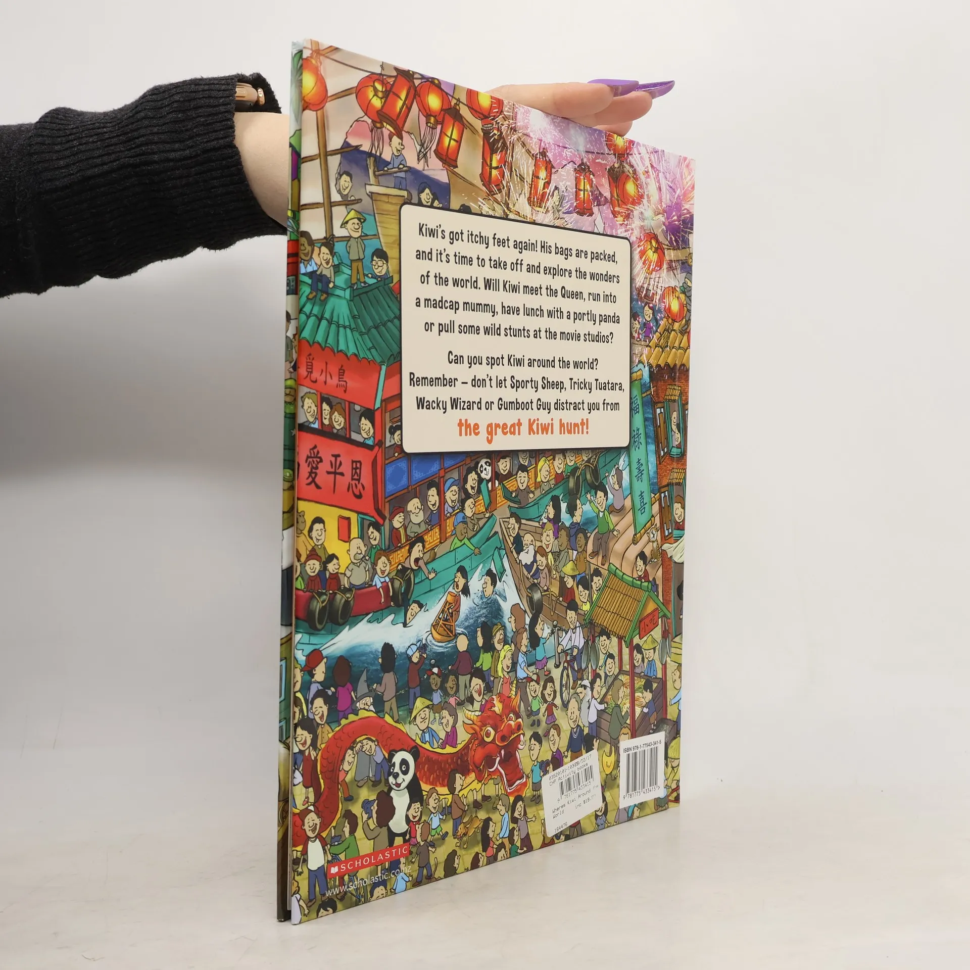 Kiwi's got itchy feet again! His bags are packed, and it's time to take off and explore the wonders of the world. Will Kiwi meet the Queen, run into a madcap mummy, have lunch with a portly panda or pull some wild stunts at the movie studios? Can you can spot Kiwi around the world? Remember-don't let Sporty Sheep, Tricky Tuatara, Wacky Wizard or Gumboot Guy distract you from the great Kiwi hunt!