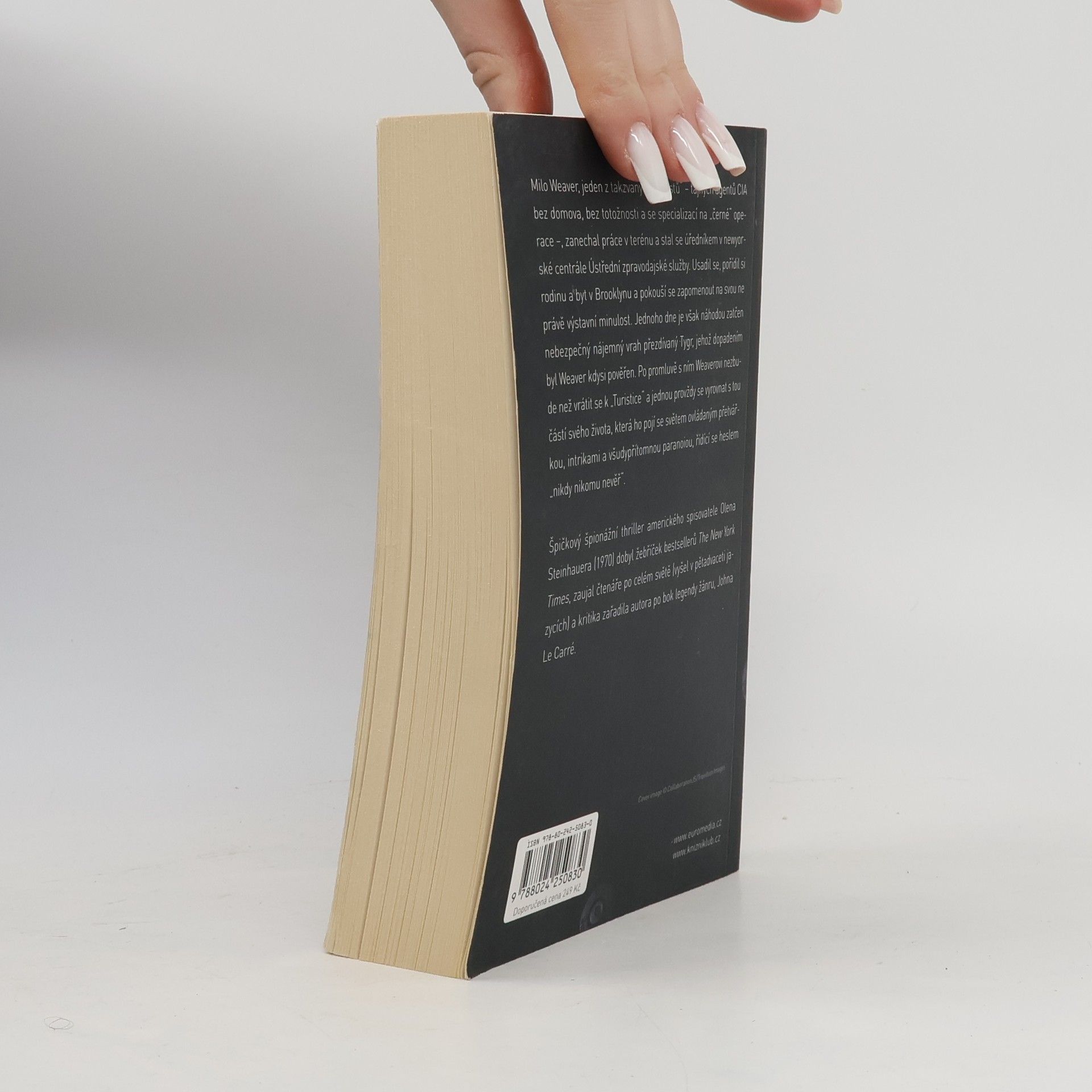Milo Weaver, jeden z takzvaných Turistů - tajných agentů CIA bez domova a bez totožnosti - zanechal práce v terénu a stal se úředníkem v newyorské centrále Ústřední zpravodajské služby. Usadil se, pořídil si rodinu a byt v Brooklynu a pokouší se zapomenout na svou ne právě výstavní minulost. Jednoho dne je však náhodou zatčen nebezpečný nájemný vrah přezdívaný Tygr, jehož dopadením byl Weaver kdysi pověřen. Po promluvě s ním Weaverovi nezbude než vrátit se k Turistice a jednou provždy se vyrovnat s tou částí svého života, která ho pojí se světem ovládaným přetvářkou, intrikami a všudypřítomnou paranoiou, řídící se heslem „nikdy nikomu nevěř". Vynikající špionážní thriller Olena Steinhauera zaujal nejen čtenáře po celém světě - jeho filmovou podobu se chystá zrealizovat slavný americký herec a režisér George Clooney.