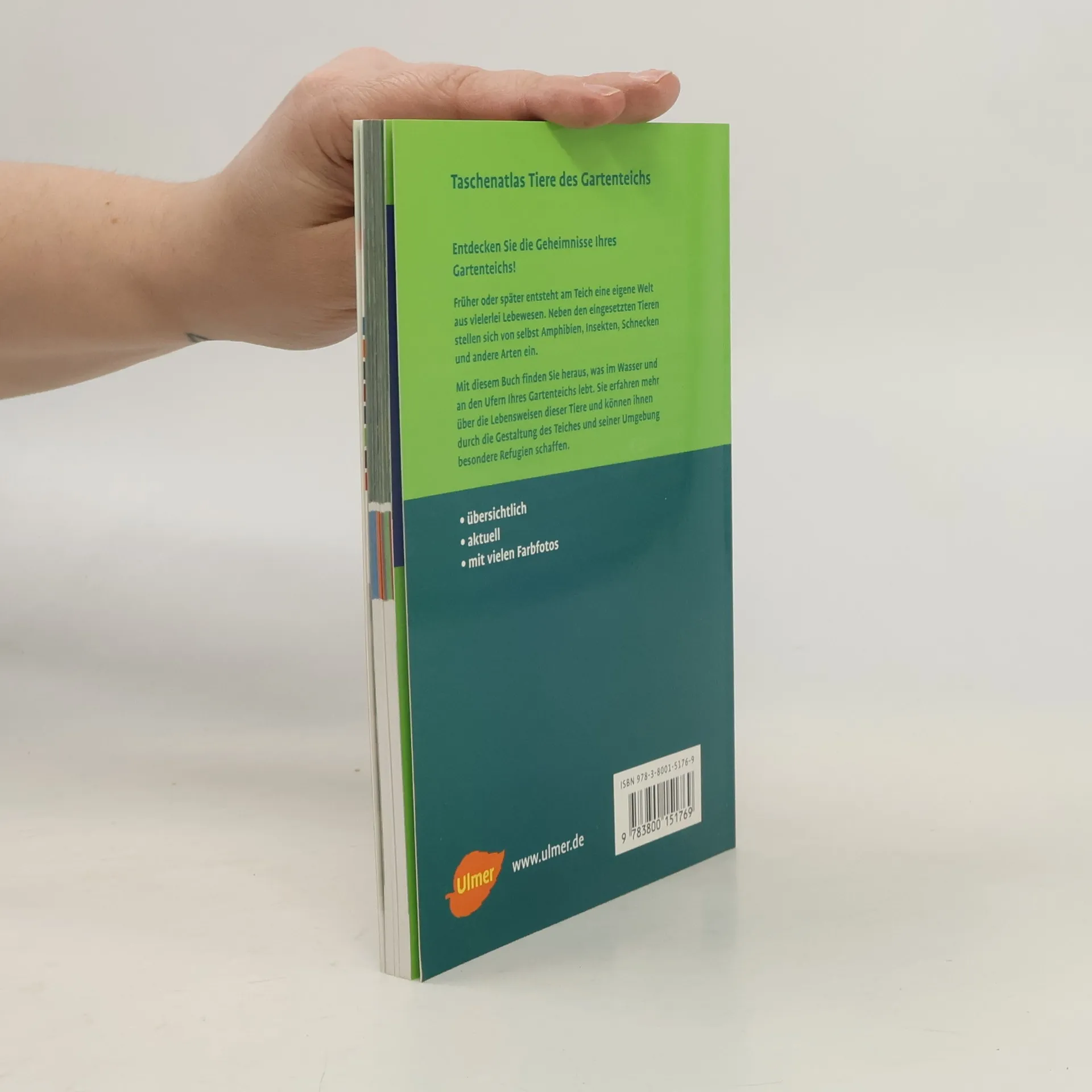 Detaillierte Porträts stellen die häufigsten Tierarten vor, die sich im und am Gartenteich von selbst einfinden oder, wie bei Fischen, gezielt eingesetzt werden können. Das Buch gibt knapp alle wichtigen Informationen zur Biologie der Tiere ist zugleich eine Hilfe, die Bedingungen rund um den Gartenteich so zu gestalten, dass sich eine natürliche Vielfalt in der Tierwelt einstellen kann.