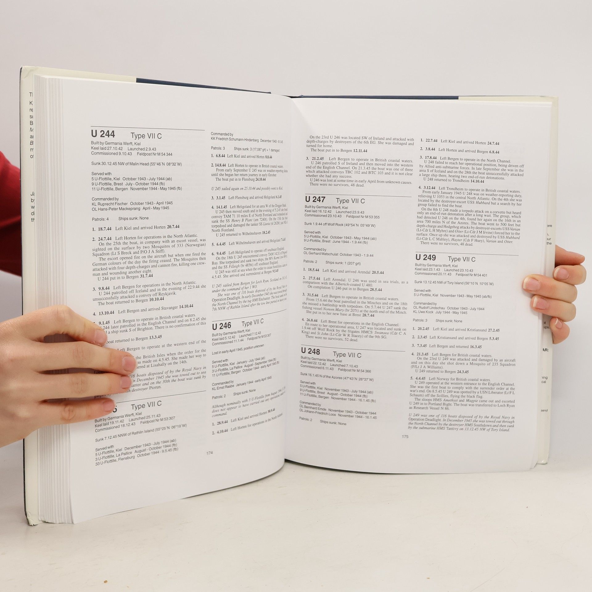 The first of two volumes covering the career histories of all of the U-boats which saw action in World War II. The histories of some 1200 vessels are covered and each entry aims to be easily accessible. Every aspect of a boat's activities are covered, from laying the keel to its ultimate fate. Each entry gives locations and dates of units and any boats served with, commanders, number of patrols undertaken, ships sunk along with names of vessels and locations, incidents of note, re-fuelling by U-tankers and supply ships, attacks on shipping, survivors picked up and finally the ultimate fate. Appendices allow cross-referencing and contain such material as Deutsches Feldpost Numbers.