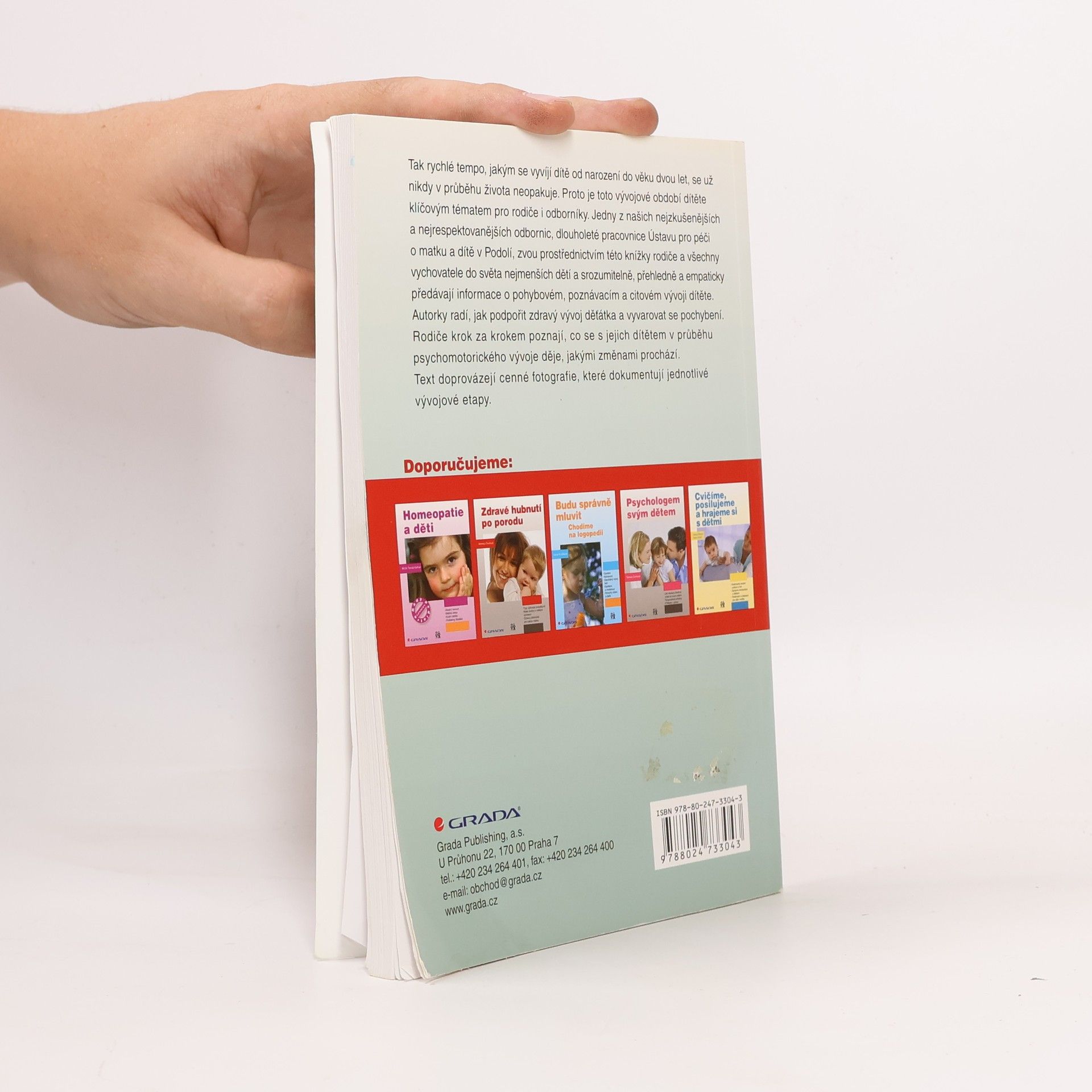 Tak rychlé tempo, jakým se vyvíjí dítě od narození do věku dvou let, se už nikdy v průběhu života neopakuje. Proto je toto vývojové období dítěte klíčovým tématem pro rodiče i odborníky. Jedny z našich nejzkušenějších a nejrespektovanějších odbornic, dlouholeté pracovnice Ústavu pro péči o matku a dítě v Podolí, zvou prostřednictvím této knížky rodiče a všechny vychovatele do světa nejmenších dětí a srozumitelně, přehledně a empaticky předávají informace o pohybovém, poznávacím a citovém vývoji dítěte. Autorky radí, jak podpořit zdravý vývoj děťátka a vyvarovat se pochybení. Rodiče krok za krokem poznají, co se s jejich dítětem v průběhu psychomotorického vývoje děje, jakými změnami prochází. Text doprovázejí cenné fotografie, které dokumentují jednotlivé vývojové etapy.