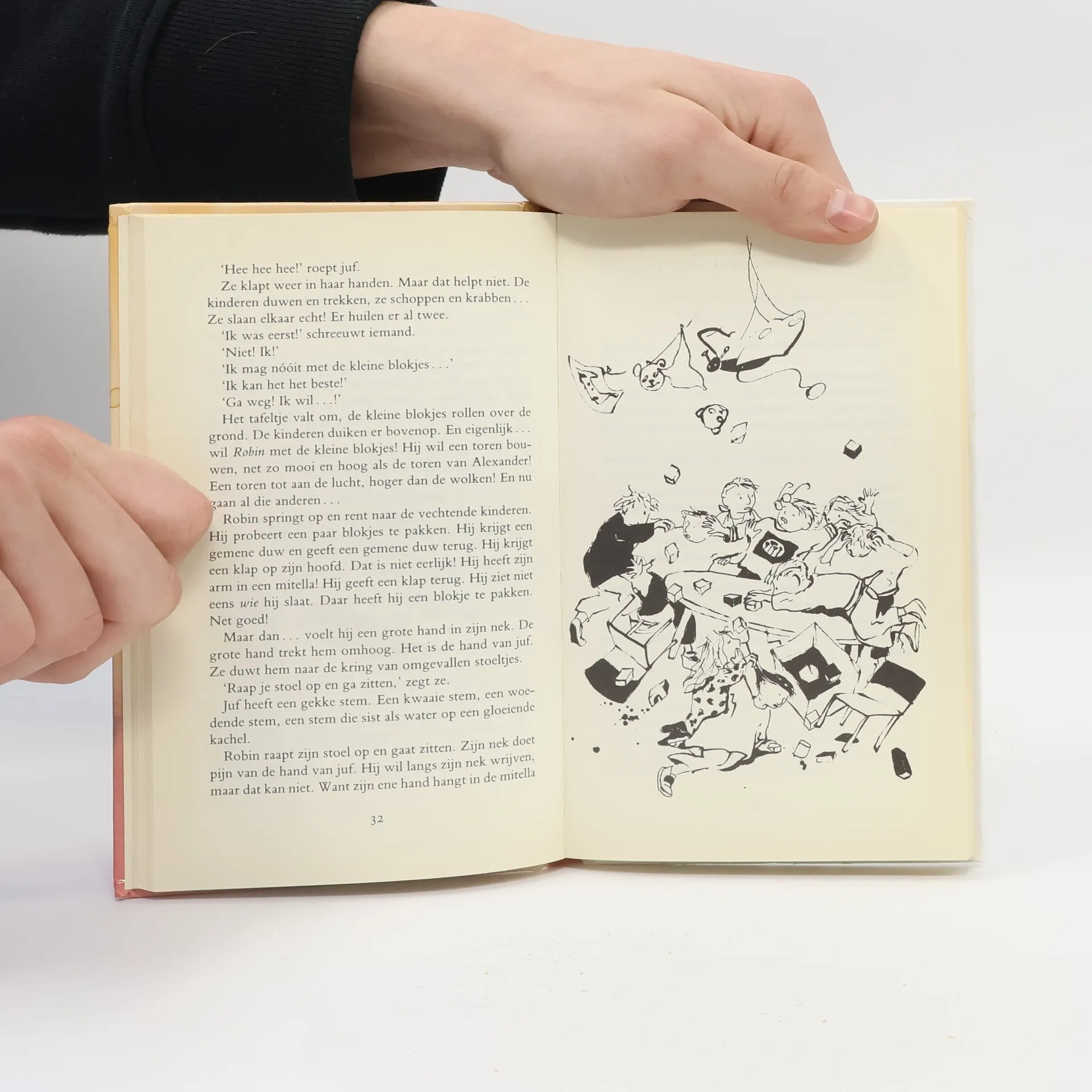 Als Robin op school komt met zijn arm in een mitella, krijgt hij niet de aandacht waar hij op hoopt. Hij leert dat geven en nemen belangrijk is voor een goede vriendschap. Vanaf ca. 4 jaar.