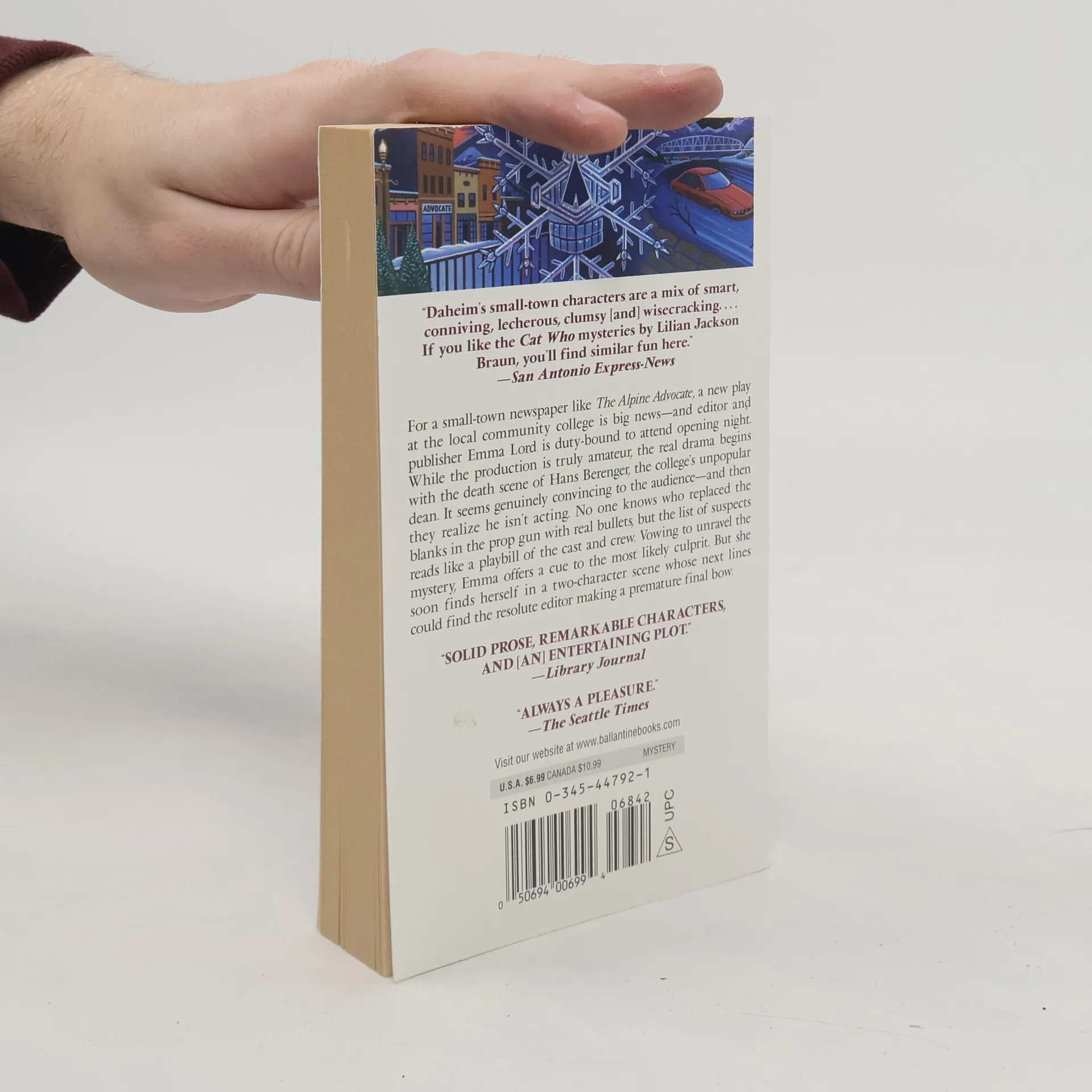 When the opening night of the Alpine Council Dramatic Club's latest production culminates in the murder of one of the actors, local newspaper editor Emma Lord assists sheriff Milo Dodge in solving the mystery