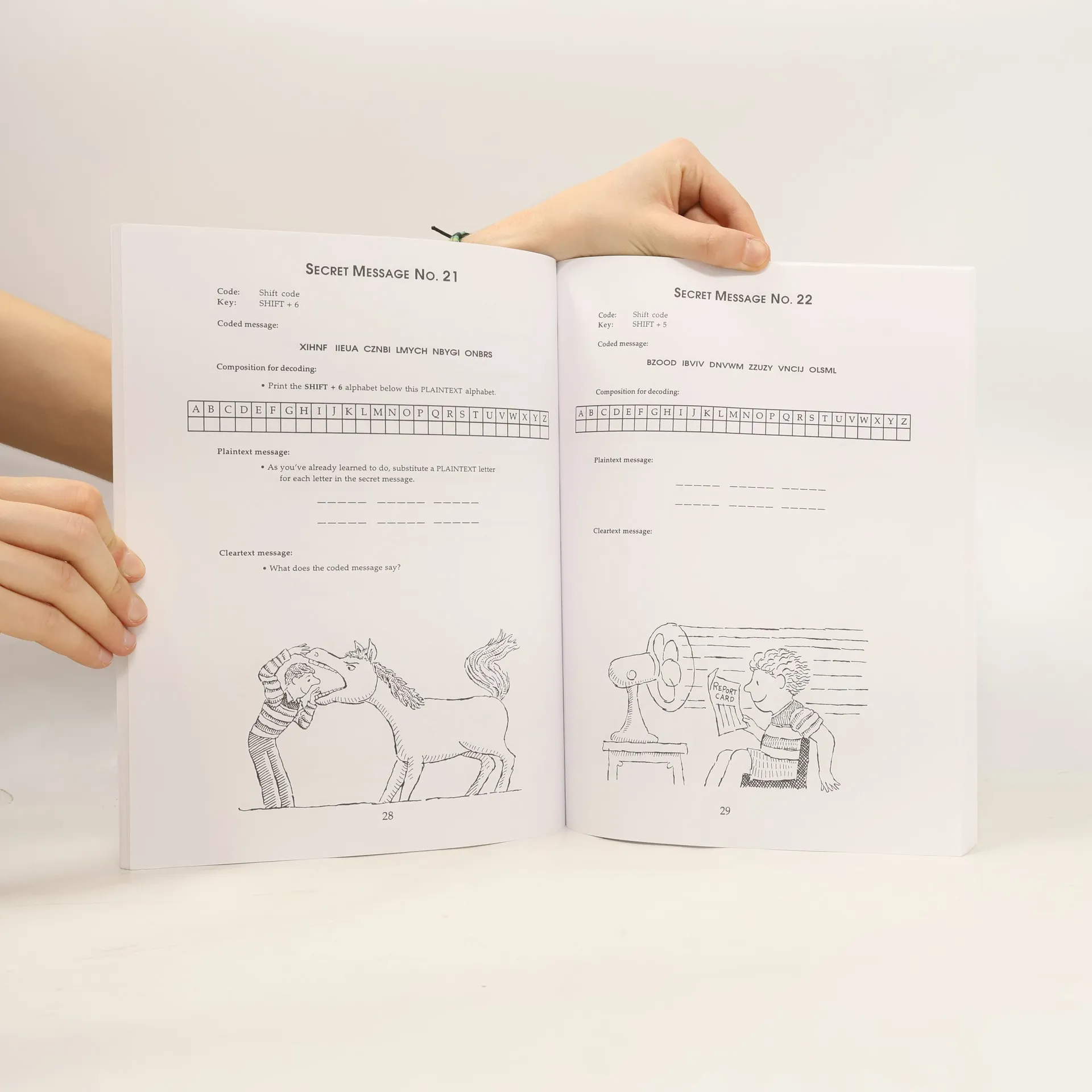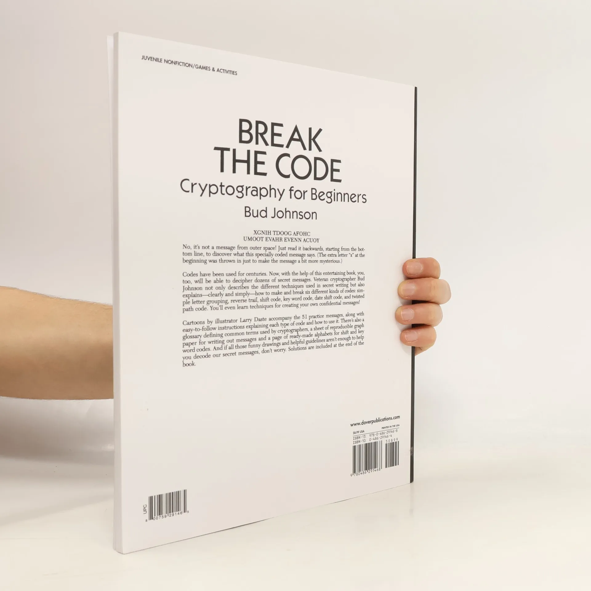 No, it's not a message from outer space! Just read it backwards, starting from the bottom line, to discover what this specially coded message says. (The extra letter "X" at the beginning was thrown in just to make the message a bit more mysterious.)Codes have been used for centuries. Now, with the help of this entertaining book, you, too, will be able to decipher dozens of secret messages. Veteran cryptographer Bud Johnson not only describes the different techniques used in secret writing but also explains — clearly and simply — how to make and break six different kinds of simple letter grouping, reverse trail, shift code, key word code, date shift code, and twisted path code. You'll even learn techniques for creating your own confidential messages!Cartoons by illustrator Larry Daste accompany the 51 practice messages, along with easy-to-follow instructions explaining each type of code and how to use it. There's also a glossary defining common terms used by cryptographers, a sheet of reproducible graph paper for writing out messages, and a page of ready-made alphabets for shift and key word codes. And if all those funny drawings and helpful guidelines aren't enough to help you decode our secret messages, don't worry. Solutions are included at the end of the book.