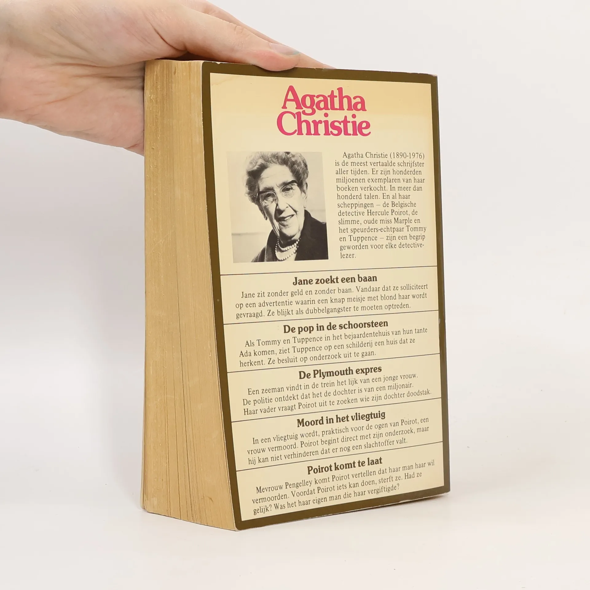 - Jane zoekt een baan (Jane in search of a job)- De pop in de schoorsteen (By the pricking of my thumbs)- De Plymouth Express (The Plymouth Express)- Moord in het vliegtuig (Death in the clouds)- Poirot komt te laat (The Cornish mystery)