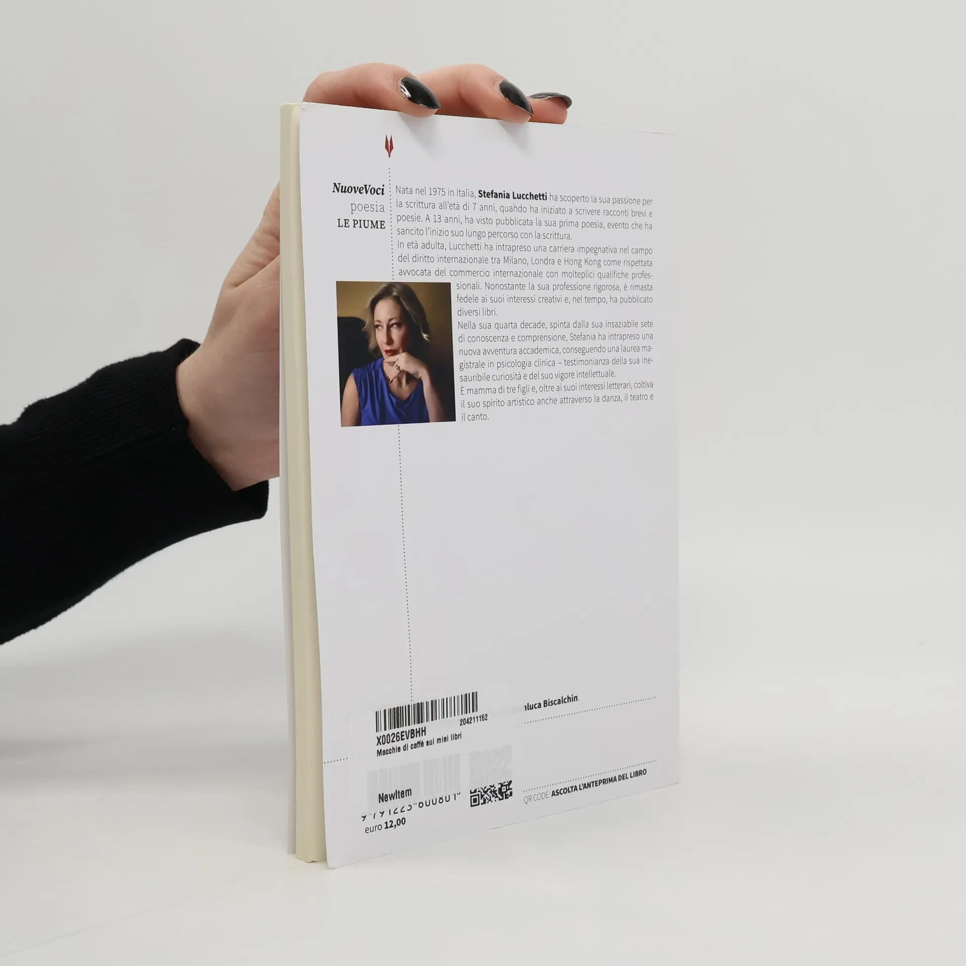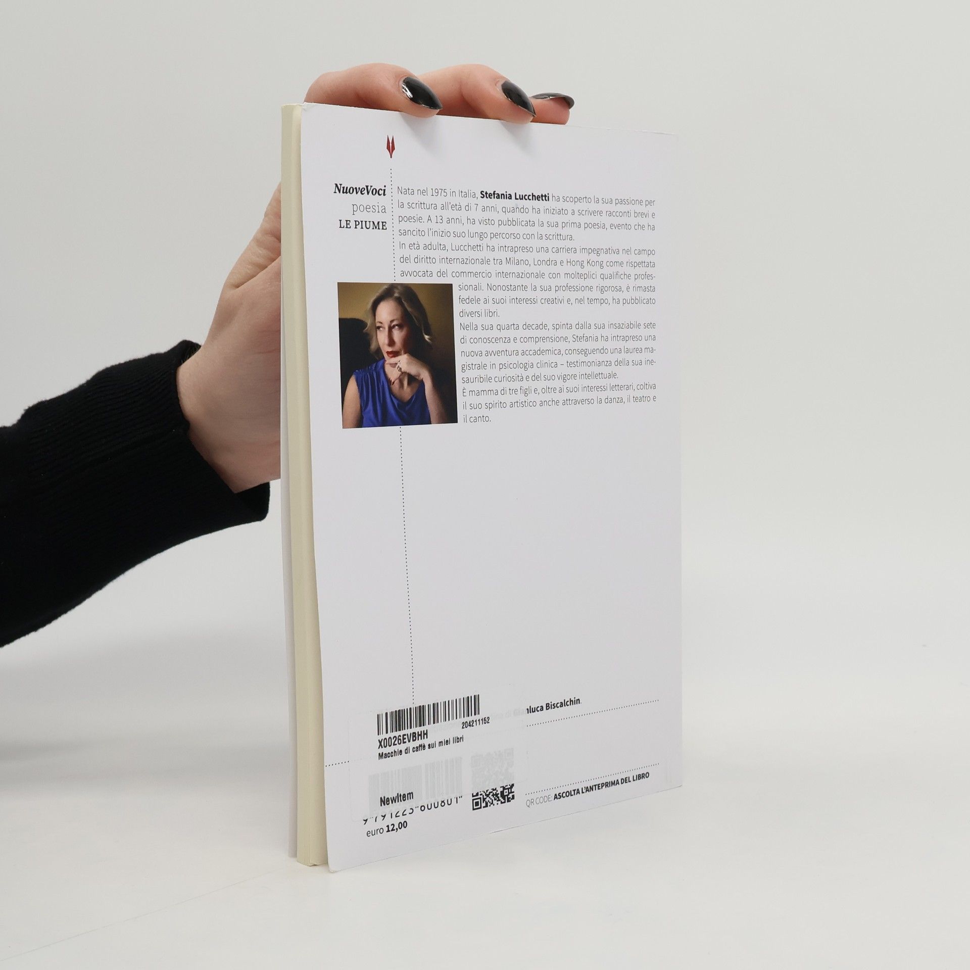 In Macchie di caffè sui miei libri, Stefania Lucchetti invita il lettore a un viaggio profondo e intimo di introspezione attraverso le imperfezioni della vita. Con voce lirica e sguardo contemporaneo, l'autrice esplora le complessità delle relazioni umane: dai legami affettivi alle connessioni trasformative con luoghi, arte e lo straordinario. Ogni poesia si apre come una soglia da cui intraprendere un passaggio tra dolore e rinascita, solitudine e desiderio, identità e maternità. Con uno stile che intreccia quotidiano e mito, filosofia e sentimento, Lucchetti tesse un dialogo continuo tra immaginazione e realtà, pensiero ed emozione.