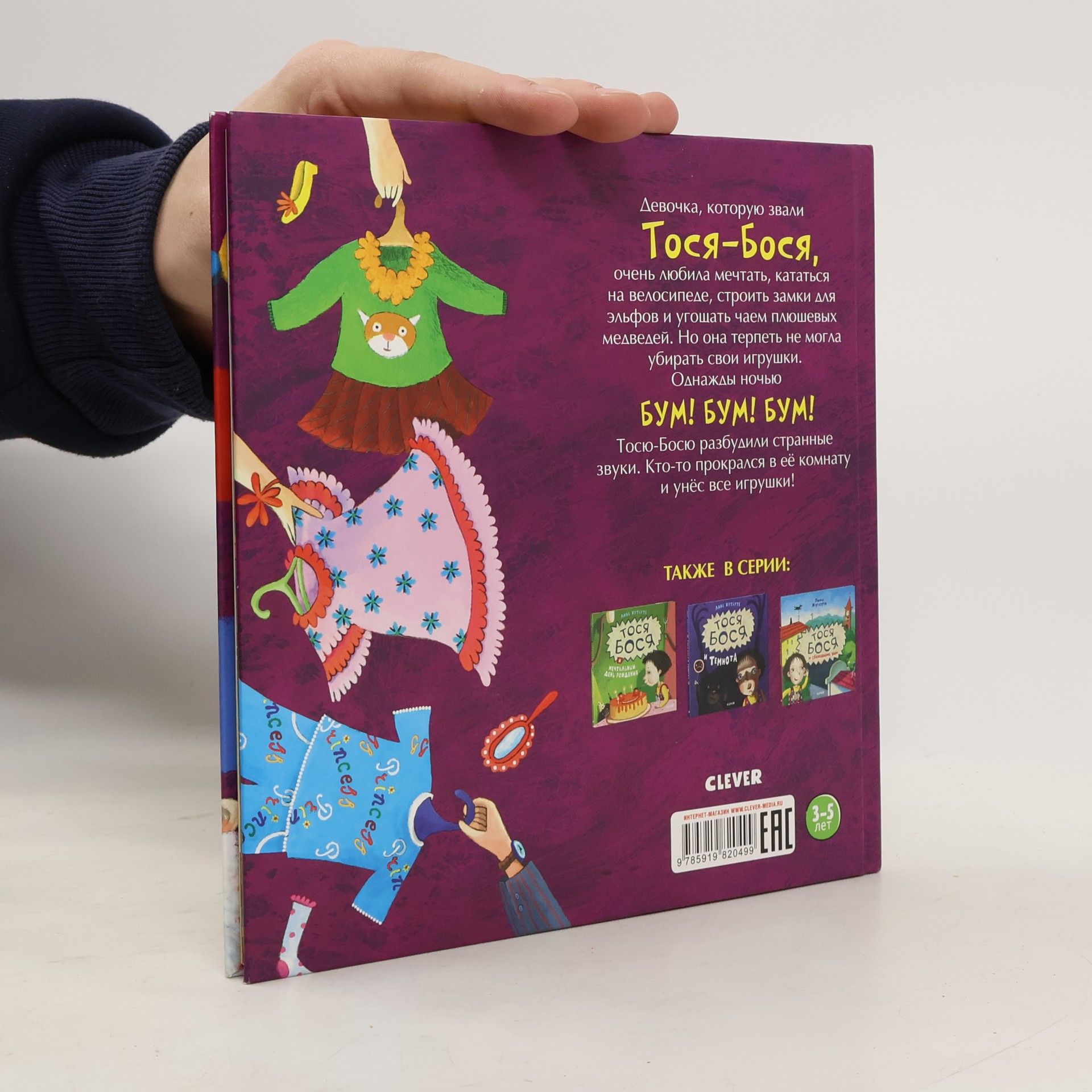 A girl named Tosi︠a︡-Bosi︠a︡ loved to daydream, ride her bike, build castles for elves, and have tea with her teddy bear. But she never had the patience to gather up all her toys. One night, she was awakened by strange sounds. Someone had entered her room and taken away all her toys.