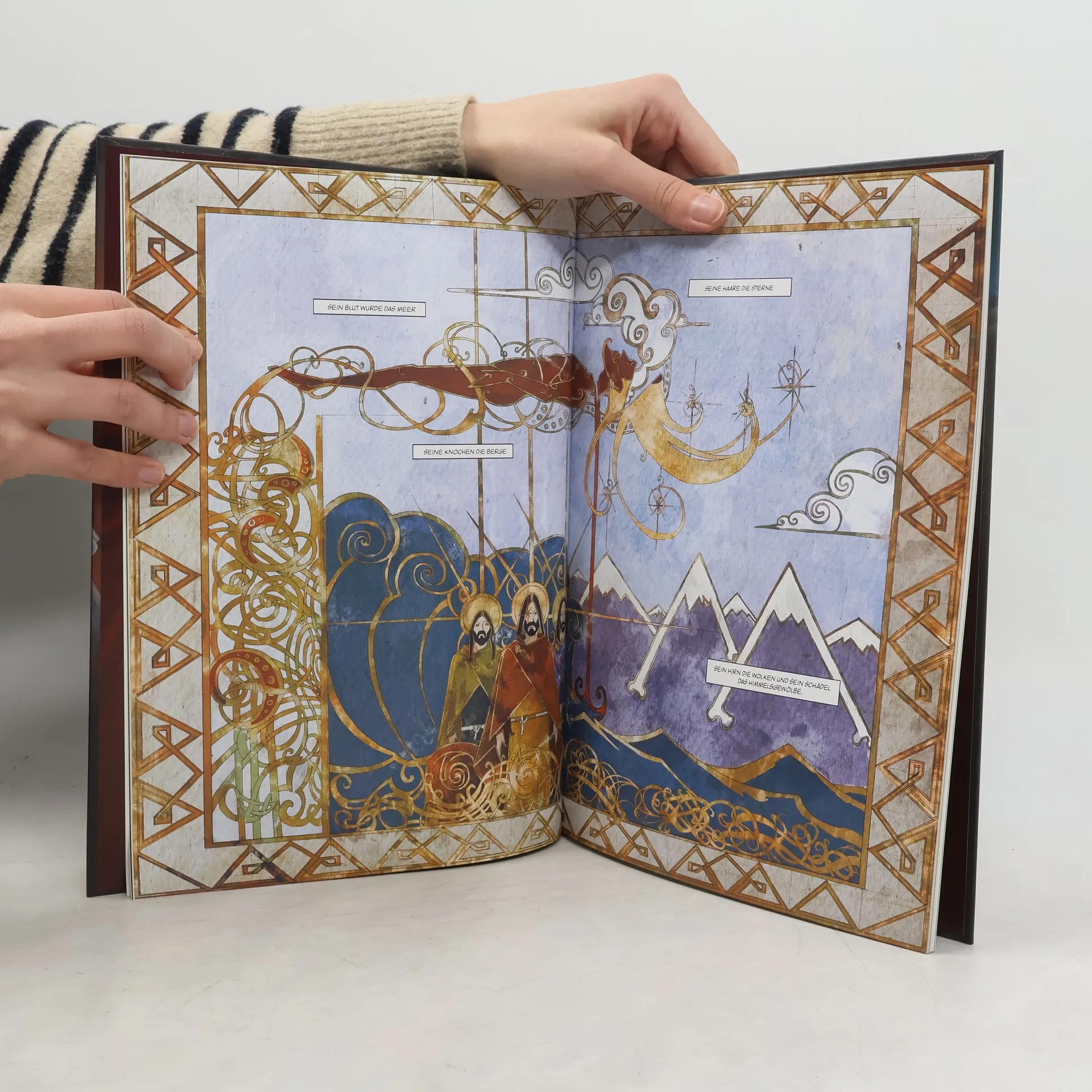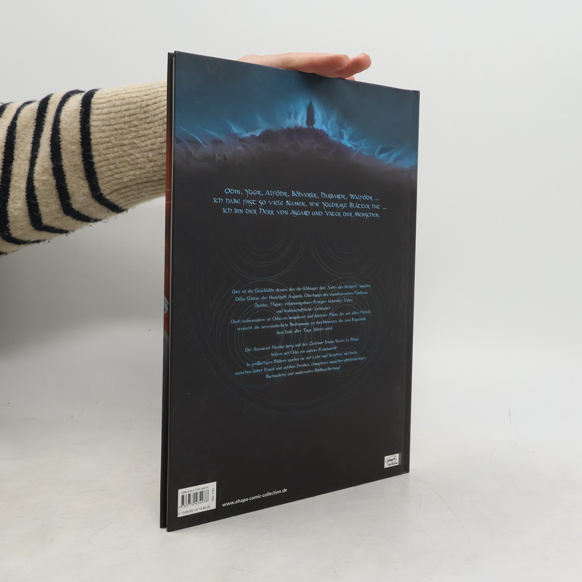 Dies ist die Geschichte von Odin, dem Hauptgott Asgards, Vater des skandinavischen Pantheon - von den Wikingern auch der "Vater der Schlachten“ genannt. Er ist Dichter, Magier, erbarmungsloser Krieger, liebender Vater, leidenschaftlicher Liebhaber und er versucht mit allen Mitteln die unveränderliche Bestimmung zu durchkreuzen, die zum Ragnarök, dem Ende aller Tage, führen wird. Der Szenarist Nicolas Jarry und der Zeichner Erwan Seure-Le Bihan liefern großartiges Artwork ! Ein faszinierendes Wechselspiel aus Licht und Schatten, antiken Fresken, grotesken Schriften und vielem mehr. Die ewige Gottheit ... nicht nur entstaubt sondern entfesselt!