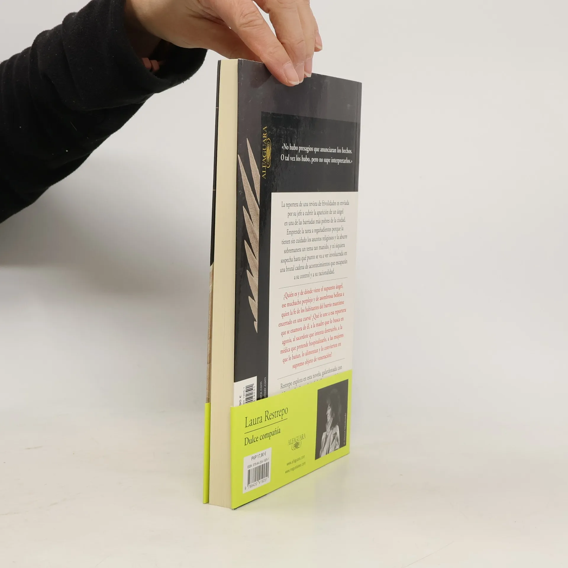 La reportera de una revista de frivolidades es enviada por su jefe a cubrir la aparición de un ángel en una de las barriadas más pobres de la ciudad. Emprende la tarea a regañadientes porque le tienen sin cuidado los asuntos religiosos y le aburre sobremanera un tema tan manido, y ni siquiera sospecha hasta qué punto se va a ver involucrada en una brutal cadena de acontecimientos que escaparán a su control y a su racionalidad. ¿Quién es y de dónde viene el supuesto ángel, ese muchacho perplejo y de asombrosa belleza a quien la fe de los habitantes del barrio mantiene encerrado en una cueva? ¿Qué lo une a esa reportera que se enamora de él, a la madre que lo busca en agonía, al sacerdote que intenta destruirlo, a la médica que pretende hospitalizarlo, a las mujeres que lo bañan, lo alimentan y lo convierten en supremo objeto de veneración? Restrepo explora en esta novela, galardonada con el Premio Sor Juana Inés de la Cruz y con el Prix France Culture, los abismos de la religiosidad popular, y acompaña los pasos de una mujer que se atreve a adentrarse en el luminoso y a la vez pavoroso territorio de lo sagrado.