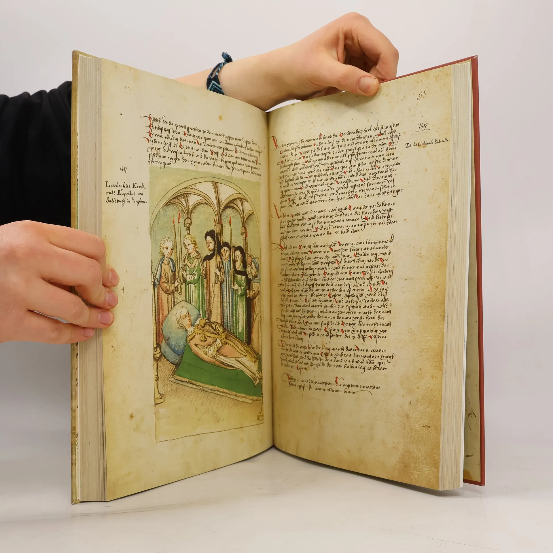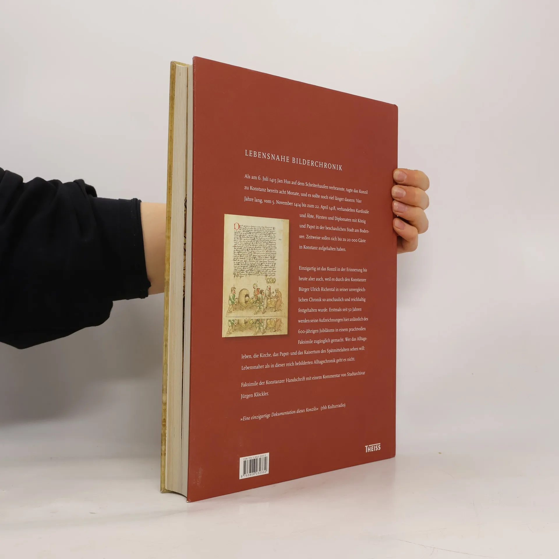 Als am 6. Juli 1415 Jan Hus auf dem Scheiterhaufen verbrannte, tagte das Konzil von Konstanz bereits acht Monate, drei weitere Jahre sollte es noch dauern: Vier Jahre lang, vom November 1414 bis zum April 1418, verhandelten Kardinäle und Äbte, Fürsten und Diplomaten mit König und Papst in der kleinen Stadt am Bodensee. Zeitweise sollen bis zu 70.000 Gäste in Konstanz gewesen sein. Es war die größte politische Zusammenkunft des Mittelalters, eine einzigartige Veranstaltung, in der sich alle Konfliktlinien der Zeit spiegelten. Einzigartig ist das Konzil in der Erinnerung bis heute aber auch, weil es durch den Konstanzer Bürger Ulrich Richental in seiner unvergleichlichen Chronik so anschaulich und reichhaltig festgehalten wurde. Erstmals seit 50 Jahren wird diese Chronik hier in einem hervorragenden Faksimile zugänglich gemacht. Wer das Alltagsleben, Kirche und Politik des Spätmittelalters sehen will: Lebensnaher als in dieser Bilderchronik geht es nicht!