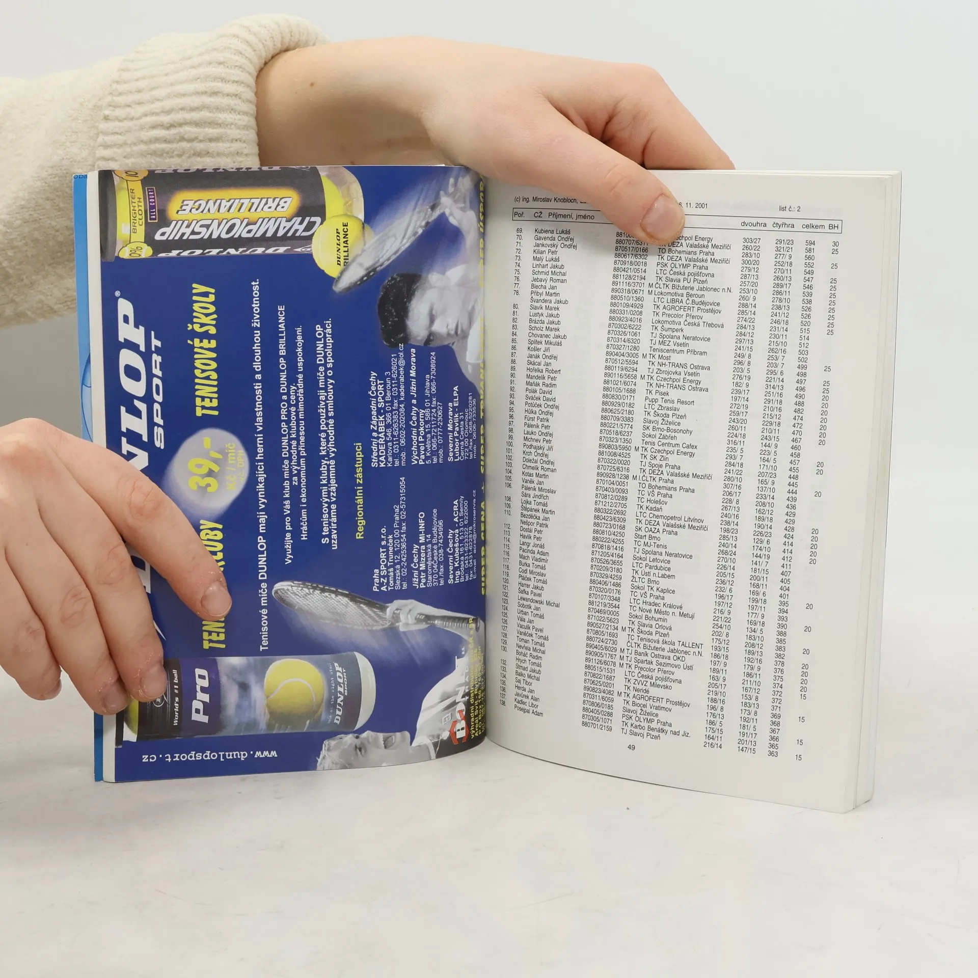 Celostátní a krajské tenisové žebříčky 2001