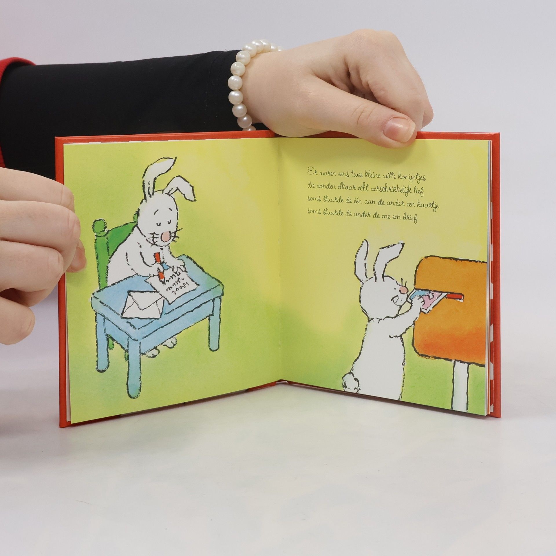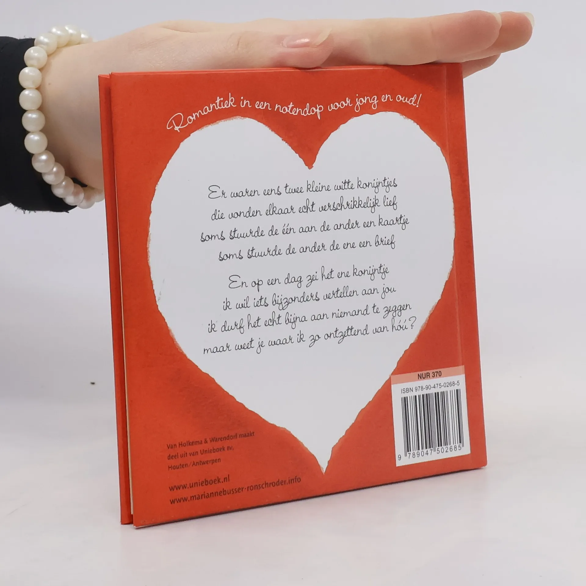 Er waren eens twee kleine witte konijntjes die vonden elkaar echt verschrikkelijk lief soms stuurde de één aan de ander een kaartje soms stuurde de ander de ene een briefEn op een dag zei het ene konijntje: ik wil iets bijzonders vertellen aan jou ik durf het echt bijna aan niemand te zeggen maar weet je waar ik zou ontzettend van hóú?Een grappig cadeauboekje waarmee je je geliefde kunt vertellen hoeveel je van hem/haar houdt!
