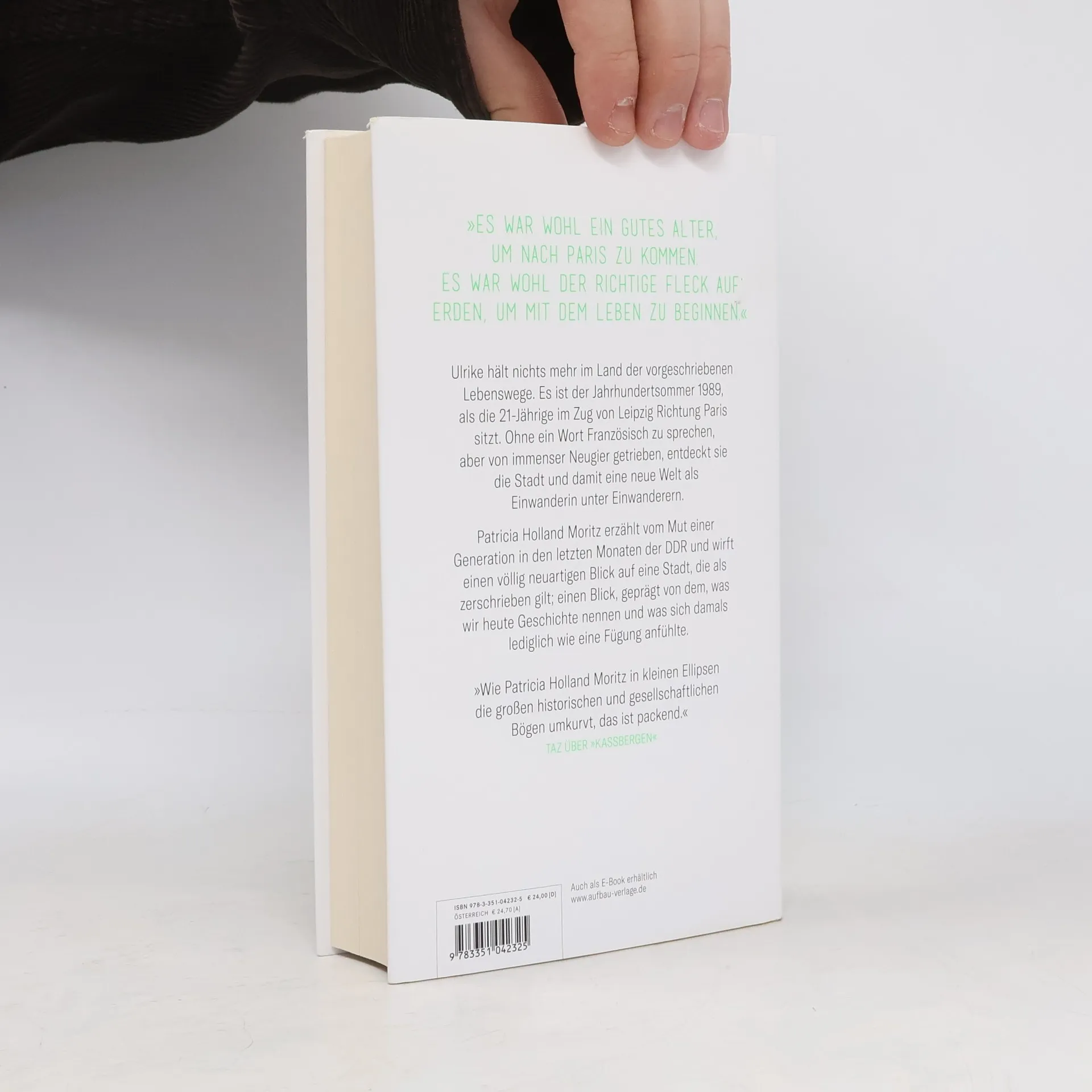 <strong>Der hinreißende neue Roman von Patricia Holland Moritz</strong> <b>»Es war wohl ein gutes Alter, um nach Paris zu kommen. Es war wohl der richtige Fleck auf Erden, um mit dem Leben zu beginnen.«</b> Ulrike hält nichts mehr im Land der vorgeschriebenen Lebenswege. Es ist der Jahrhundertsommer 1989, als die 21-Jährige im Zug von Leipzig Richtung Paris sitzt. Ohne ein Wort Französisch zu sprechen, aber von immenser Neugier getrieben, entdeckt sie die Stadt und damit eine neue Welt als Einwanderin unter Einwanderern. Patricia Holland Moritz erzählt vom Mut einer Generation in den letzten Monaten der DDR und wirft einen völlig neuartigen Blick auf eine Stadt, die als zerschrieben gilt; einen Blick, geprägt von dem, was wir heute Geschichte nennen und was sich damals lediglich wie eine Fügung anfühlte. »Wie Patricia Holland Moritz in kleinen Ellipsen die großen historischen und gesellschaftlichen Bögen umkurvt, das ist packend.« – taz über »Kaßbergen«