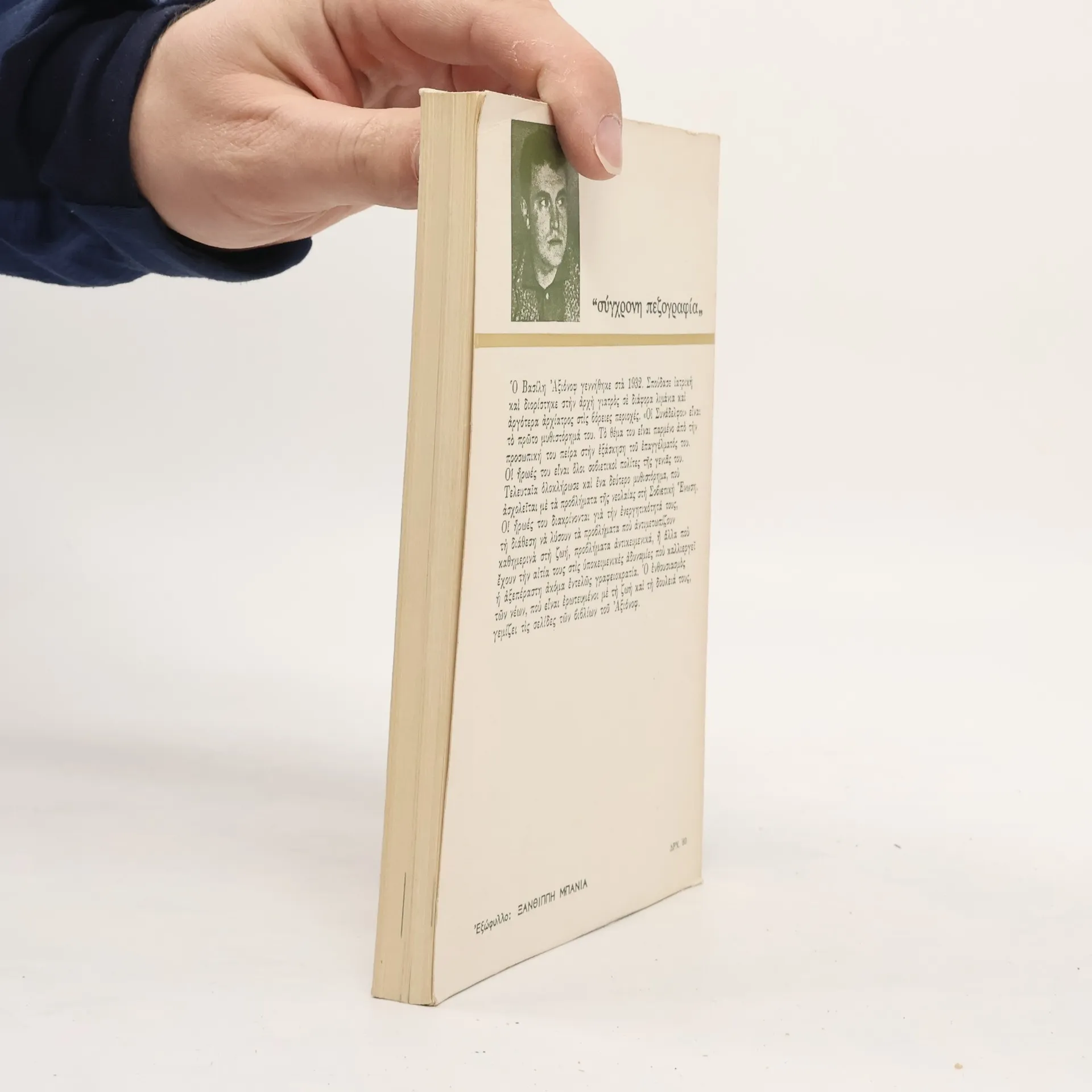 Ο Βασίλη Αξιόνοφ γεννήθηκε στα 1932. Σπούδασε ιατρική και διορίστηκε στην αρχή γιατρός σε διάφορα λιμάνια και αργότερα αρχίατρος στις βόρειες περιοχές. Οι "Συνάδελφοι" είναι το πρώτο μυθιστόρημά του. Το θέμα του είναι παρμένο από την προσωπική του πείρα στην εξάσκηση του επαγγέλματός του. Οι ήρωές του είναι όλοι σοβιετικοί πολίτες της γενιάς του. Διακρίνονται για την ενεργητικότητά τους, τη διάθεση να λύσουν τα προβλήματα που αντιμετωπίζουν καθημερινά στη ζωή, προβλήματα αντικειμενικά ή άλλα που έχουν την αιτία τους στις υποκειμενικές αδυναμίες που καλλιεργεί η αξεπέραστη ακόμα εντελώς γραφειοκρατία. Ο ενθουσιασμός των νέων, που είναι ερωτευμένοι με τη ζωή και τη δουλειά τους, γεμίζει τις σελίδες των βιβλίων του Αξιόνοφ. Επανέκδοση της μετάφρασης του Κοτζιά από τα 1968 και τον εκδοτικό οίκο Π.Λ.Ε. των εξορίστων Ελλήνων κομμουνιστών στο Βουκουρέστι.