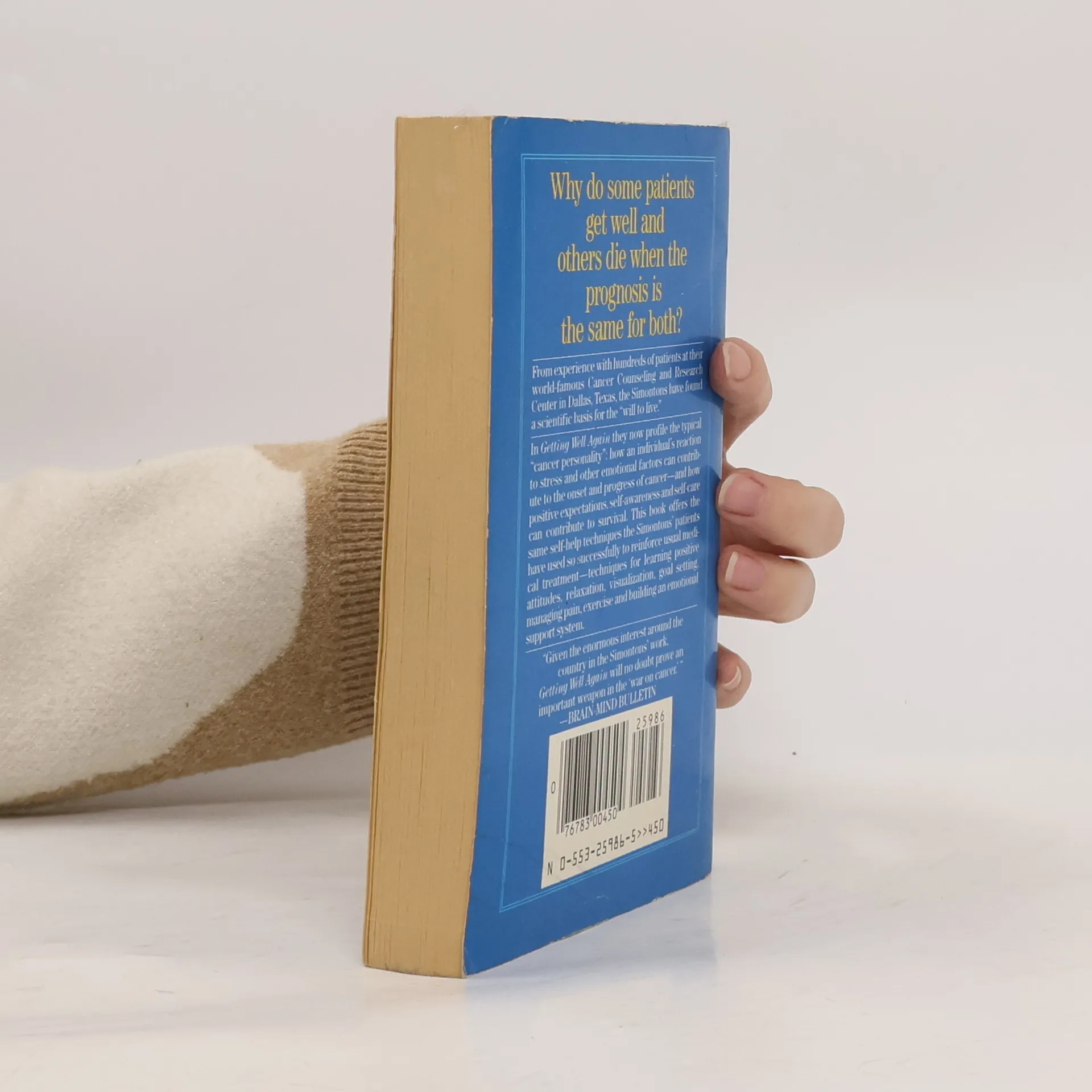 Based on the Simontons' experience with hundreds of patients at their world-famous Cancer Counseling and Research Center, Getting Well Again introduces the scientific basis for the "will to live." In this revolutionary book the Simontons profile the typical "cancer personality": how an individual's reactions to stress and other emotional factors can contribute to the onset and progress of cancer -- and how positive expectations, self-awareness, and self-care can contribute to survival. This book offers the same self-help techniques the Simonton's patients have used to successfully to reinforce usual medical treatment -- techniques for learning positive attitudes, relaxation, visualization, goal setting, managing pain, exercise, and building an emotional support system.