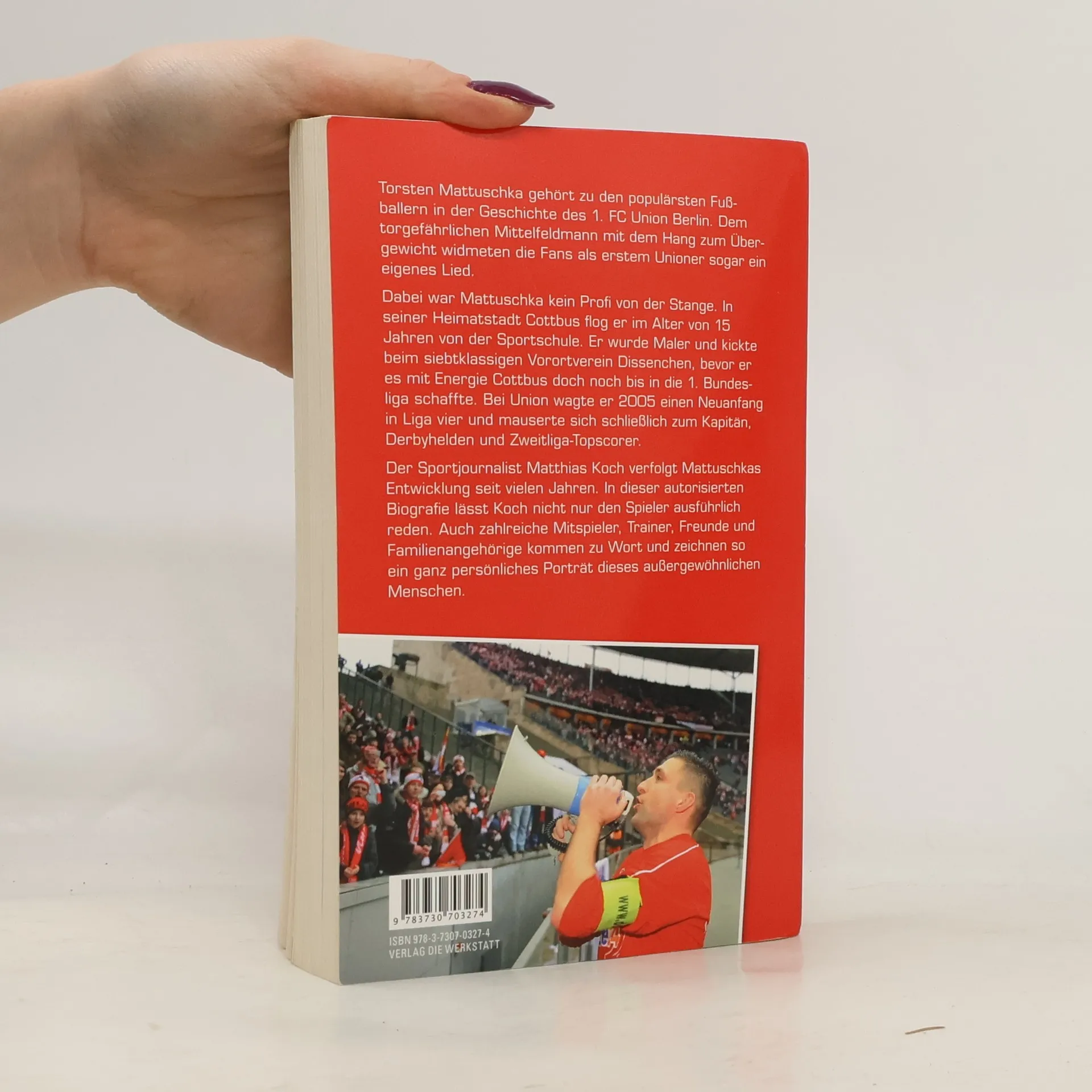 Torsten Mattuschka gehört zu den populärsten Fußballern in der Geschichte des 1. FC Union Berlin. Dem torgefährlichen Mittelfeldmann mit dem Hang zum Übergewicht widmeten die Fans als erstem Unioner sogar ein eigenes Lied. Dabei war Mattuschka kein Profi von der Stange. In seiner Heimatstadt Cottbus flog er im Alter von 15 Jahren von der Sportschule. Er wurde Maler und kickte beim siebtklassigen Vorortverein Dissenchen, bevor er es mit Energie Cottbus doch noch bis in die 1. Bundesliga schaffte. Bei Union wagte er 2005 einen Neuanfang in Liga vier und mauserte sich schließlich zum Kapitän, Derbyhelden und Zweitliga-Topscorer. Der Sportjournalist Matthias Koch verfolgt Mattuschkas Entwicklung seit vielen Jahren. In dieser autorisierten Biografie lässt Koch nicht nur den Spieler ausführlich reden. Auch zahlreiche Mitspieler, Trainer, Freunde und Familienangehörige kommen zu Wort und zeichnen so ein ganz persönliches Porträt dieses außergewöhnlichen Menschen.