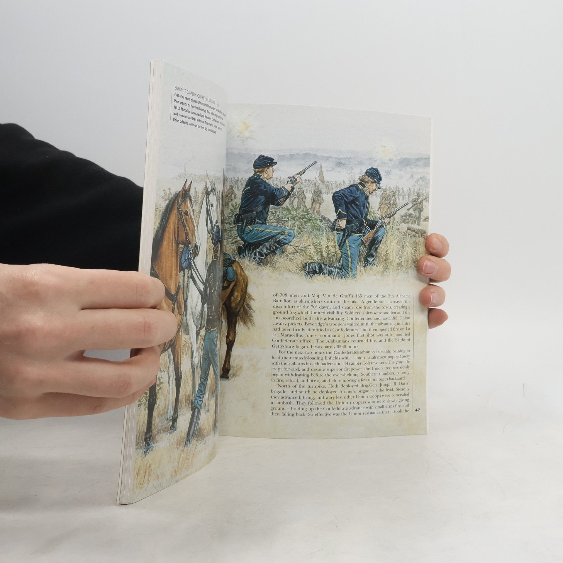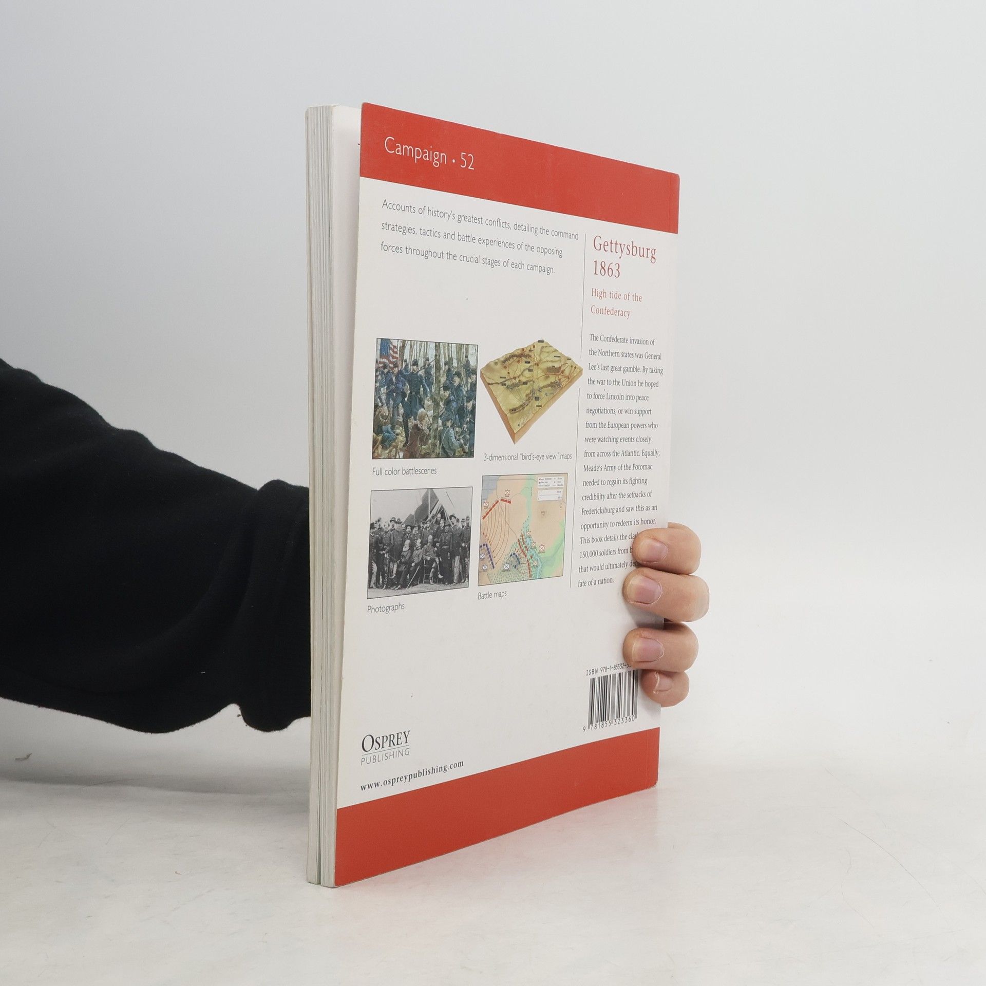 Osprey's study of the Battle of Gettysburg (1863), one of the decisive battles of the American Civil War (1861-1865). The Confederate invasion of the Northern states was General Lee's last great gamble. By taking the war to the Union he hoped to force Lincoln into peace negotiations, or win support from the European powers who were watching events closely from across the Atlantic. Equally, Meade's Army of the Potomac needed to regain it's fighting credibility after the setbacks of Fredericksburg and saw this as an opportunity to redeem its honour. The clash of 150,000 soldiers from both sides would ultimately decide the fate of a nation.