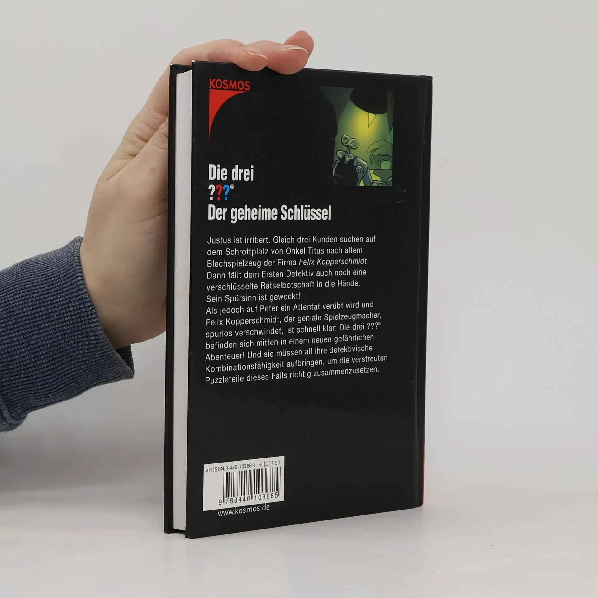 Justus ist irritiert. Gleich drei Kunden suchen auf dem Schrottplatz von Onkel Titus nach altem Blechspielzeug der Firma <i>Kopperschmidt</i>. Dann fällt dem Ersten Detektiv auch noch eine verschlüsselte Rätselbotschaft in die Hände. Sein Spürsinn ist geweckt! Als jedoch auf Peter ein Attentat verübt wird und Felis Kopperschmidt, der geniale Spielzeugmacher, spurlos verschwindet, ist schnell klar: Die drei ??? befinden sich mitten in einem neuen gefährlichen Abenteuer! Und sie müssen all ihre detektivische Kombinationsfähigkeit aufbringen, um die verstreuten Puzzleteile dieses Falls richtig zusammenzusetzen.