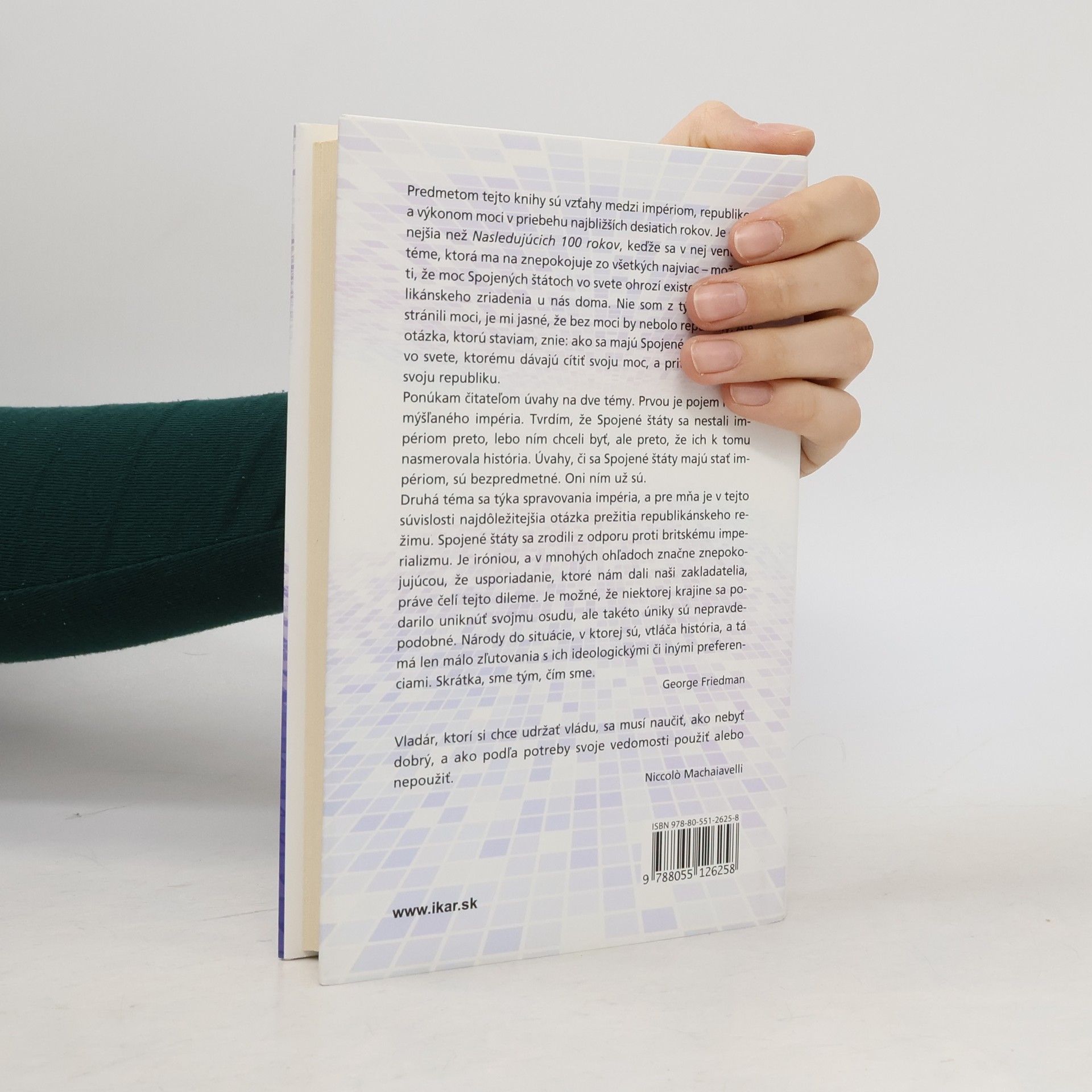 Vo svojej knihe George Friedman, odborník na geopolitické prognózy a zakladateľ organizácie STRATFOR, ponúka fascinujúci pohľad na významné udalosti a trendy, ktoré formujú budúce desaťročie. S rovnakým rozhľadom a znalosťou histórie, ktorými si získal uznanie v mediálnych, akademických a politických kruhoch, sa zameriava na očakávané výzvy, ktorým budú Spojené štáty a svet čeliť. Nasledujúcich desať rokov prinesie obrovské zvraty. Vojny v islamskom svete sa budú pomaly končiť, teroristická hrozba sa stane súčasťou každodenného života a technologický a energetický vývoj sa vydá nečakanými smermi. Spojené štáty budú v strategickej hre s Iránom a Čína sa bude vyrovnávať s blížiacou sa krízou. Vzťahy medzi USA a Izraelom prejdú zásadnou zmenou, zatiaľ čo ekonomika sa presunie od finančnej krízy k nedostatku pracovných síl. Americký prezident bude musieť uznať, že USA sa stali novodobým impériom, a prispôsobiť tomu svoje konanie. Friedman predkladá provokatívnu prognózu, ktorá ponúka nový pohľad na blízku budúcnosť a umožňuje lepšie pochopenie predchádzajúcich storočí, pričom sa zameriava na perspektívy lídrov a očakávané konflikty a možnosti.