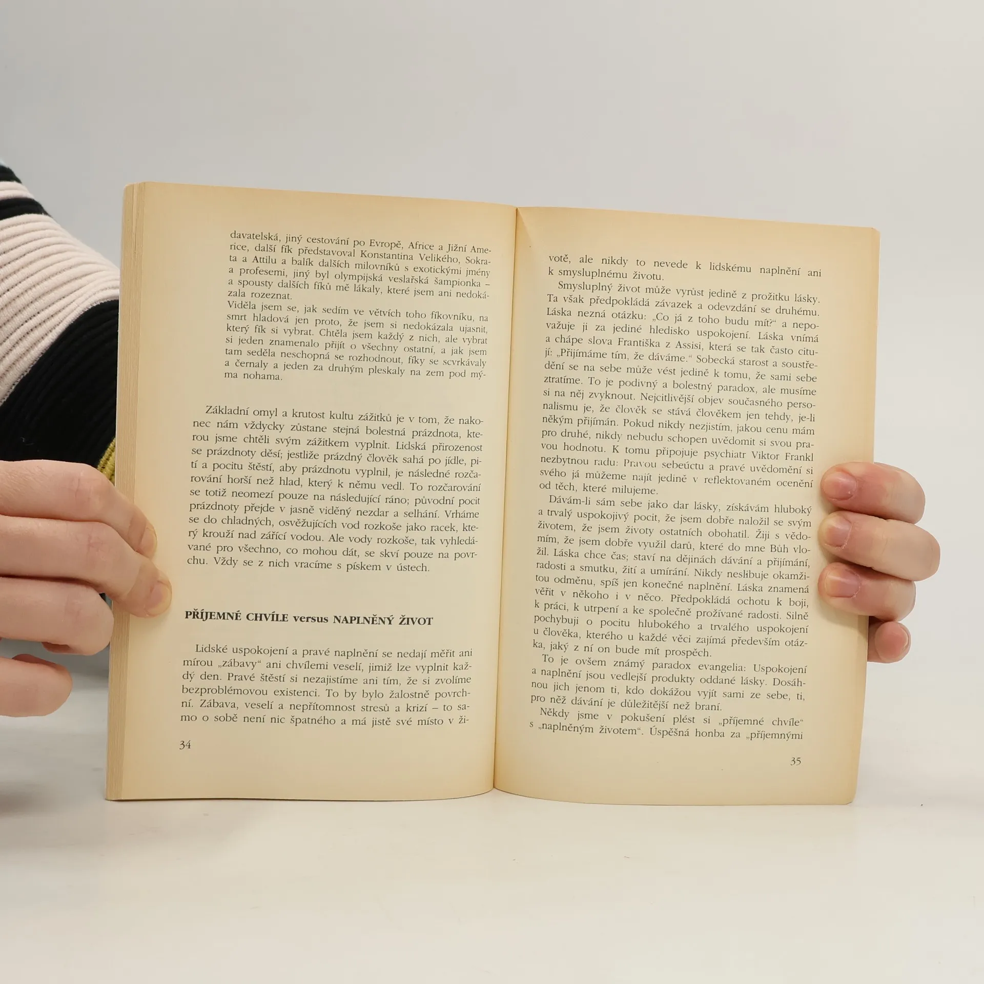 Kniha odhaluje smysl slov „skutečná, bezpodmínečná láska“. Autor, dnes už klasik spirituální literatury, se v ní zamýšlí nad podmínkami takového vztahu, kdy si přestáváme jakékoli podmínky klást, protože druhého milujeme takového, jaký je, s tím, co k němu patří, co dělá, jak mluví a co vyznává. Láska totiž nepatří do kategorií, které vládnou tomuto světu a které vyjadřujeme slovy: Co z toho budu mít? „Pravá láska je a vždy musí být darem ve svobodě.“