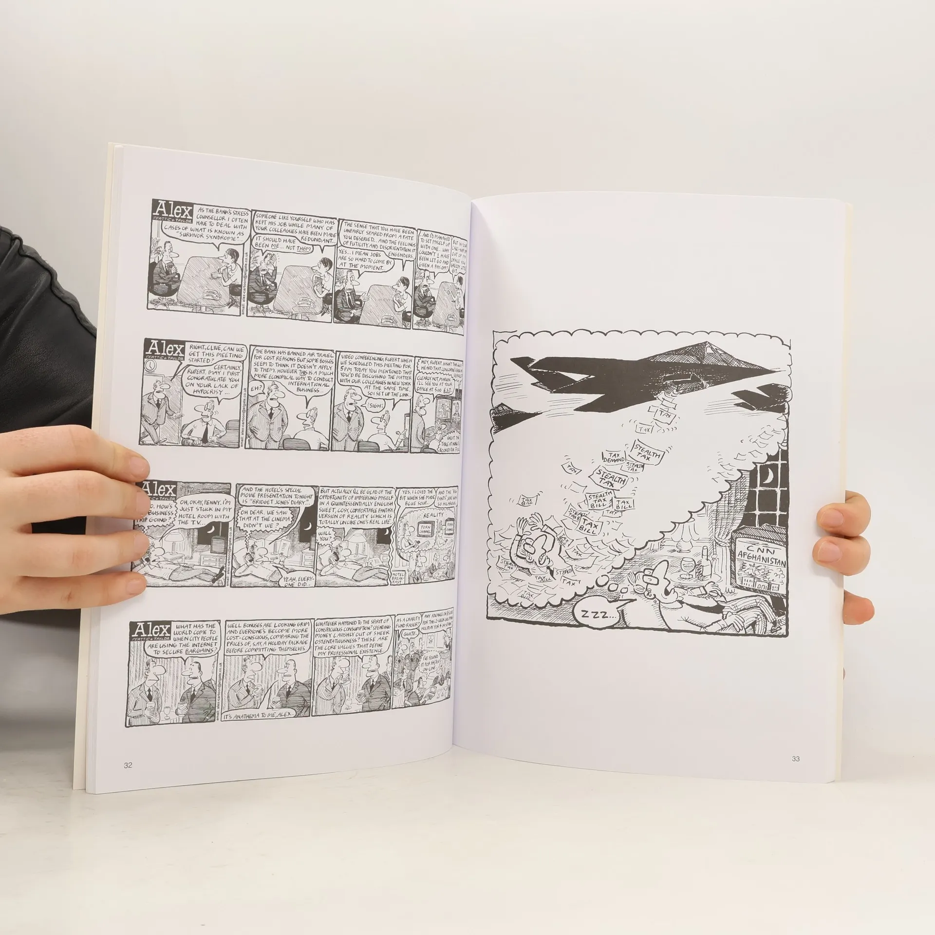 Alex, the cartoon investment banker who resides on the business pages of the Daily Telegraph, emerges into a new Millennium just as arrogant and unpleasant as he was in the old. It's been the toughest year so far in Alex's fifteen-year career. His world is rocked by financial scandals, he discovers his boss is having an affair with the head of human resources and Alex must fight to retain his job as many of his colleagues are made redundant around him. Regardless of the chaos of his daily life, the irrepressible Alex still manages to humiliate his trainee Robin, ski, play golf and experience very odd dreams where he finds himself a pupil of Hogwarts School of Witchcraft and Wizardry. Alex has a huge following in the City of London and also in the Shires when the Telegraph reading parents of brokers, bankers and lawyers must sit and wonder what their highly paid offspring really get up to during working hours.