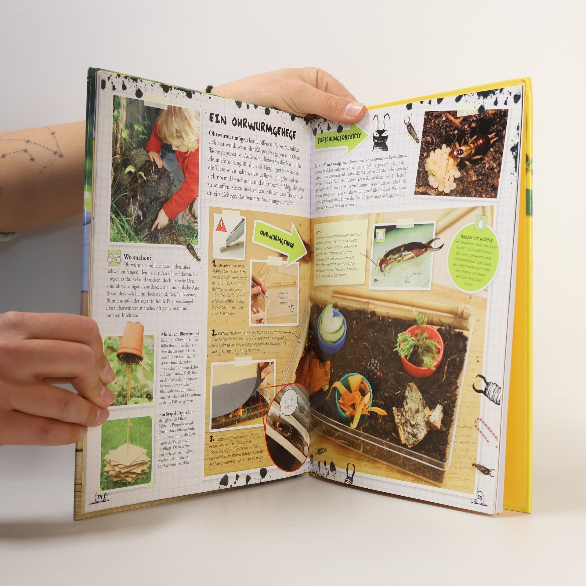 Anleitungen zum Fangen, Halten, Beobachten und Füttern von allerlei äKrabbeltierenä wie z.B. Asseln, Spinnen, Würmer und Raupen. Beschrieben werden auch Erkennungsmerkmale, Lebensraum und Lebensweise. Ab 9.
