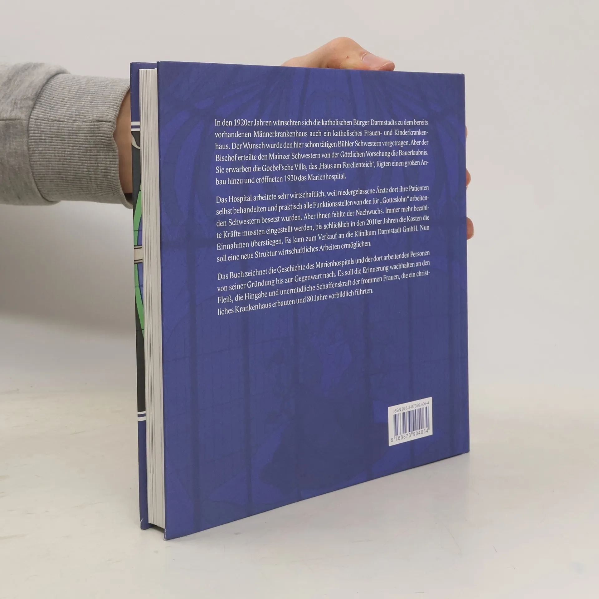 In den 1920er Jahren wünschten sich die katholischen Bürger Darmstadts zu dem bereits vorhandenen Männerkrankenhaus auch ein katholisches Frauen- und Kinderkrankenhaus. Der Wunsch wurde den hier schon tätigen Bühler Schwestern vorgetragen. Aber der Bischof erteilte den Mainzer Schwestern von der Göttlichen Vorsehung die Bauerlaubnis. Sie erwarben die Goebel’sche Villa, das ‚Haus am Forellenteich‘, fügten einen großen Anbau hinzu und eröffneten 1930 das Marienhospital. Das Hospital arbeitete sehr wirtschaftlich, weil niedergelassene Ärzte dort ihre Patienten selbst behandelten und praktisch alle Funktionsstellen von den für „Gotteslohn“ arbeitenden Schwestern besetzt wurden. Aber ihnen fehlte der Nachwuchs. Immer mehr bezahlte Kräfte mussten eingestellt werden, bis schließlich in den 2010er Jahren die Kosten die Einnahmen überstiegen. Es kam zum Verkauf an die Klinikum Darmstadt GmbH. Nun soll eine neue Struktur wirtschaftliches Arbeiten ermöglichen. Das Buch zeichnet die Geschichte des Marienhospitals und der dort arbeitenden Personen von seiner Gründung bis zur Gegenwart nach. Es soll die Erinnerung wachhalten an den Fleiß, die Hingabe und unermüdliche Schaffenskraft der frommen Frauen, die ein christliches Krankenhaus erbauten und 80 Jahre vorbildlich führten. Immo