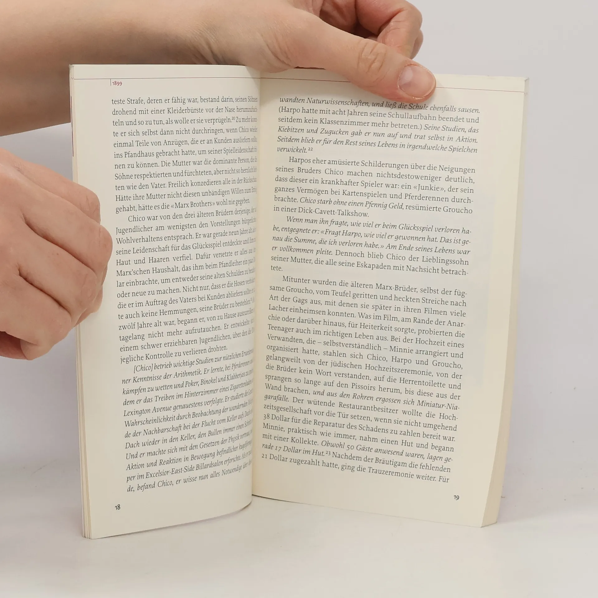 Ein neuer Band aus der renommierten Reihe der 'Rowohlts Monographien', der die Anarcho-Komiker Groucho, Chico, Harpo und Zeppo Marx vorstellt. Viele Zitate aus der in verschiedenen Ausgaben erschienenen Autobiografie von Groucho Marx: 'Groucho und ich/Schule des Lächelns' (BA 1/96), aber auch ausführliche Textbeispiele der schönsten Pointen im Original und deutscher Übersetzung aus den Spielfilmen der Spaßmacher sorgen für die notwendige Authentizität und Seriosität - so man bei den Marx Brothers davon überhaupt sprechen darf. Das Ganze kommt außerdem noch ansprechend illustriert daher. (2).