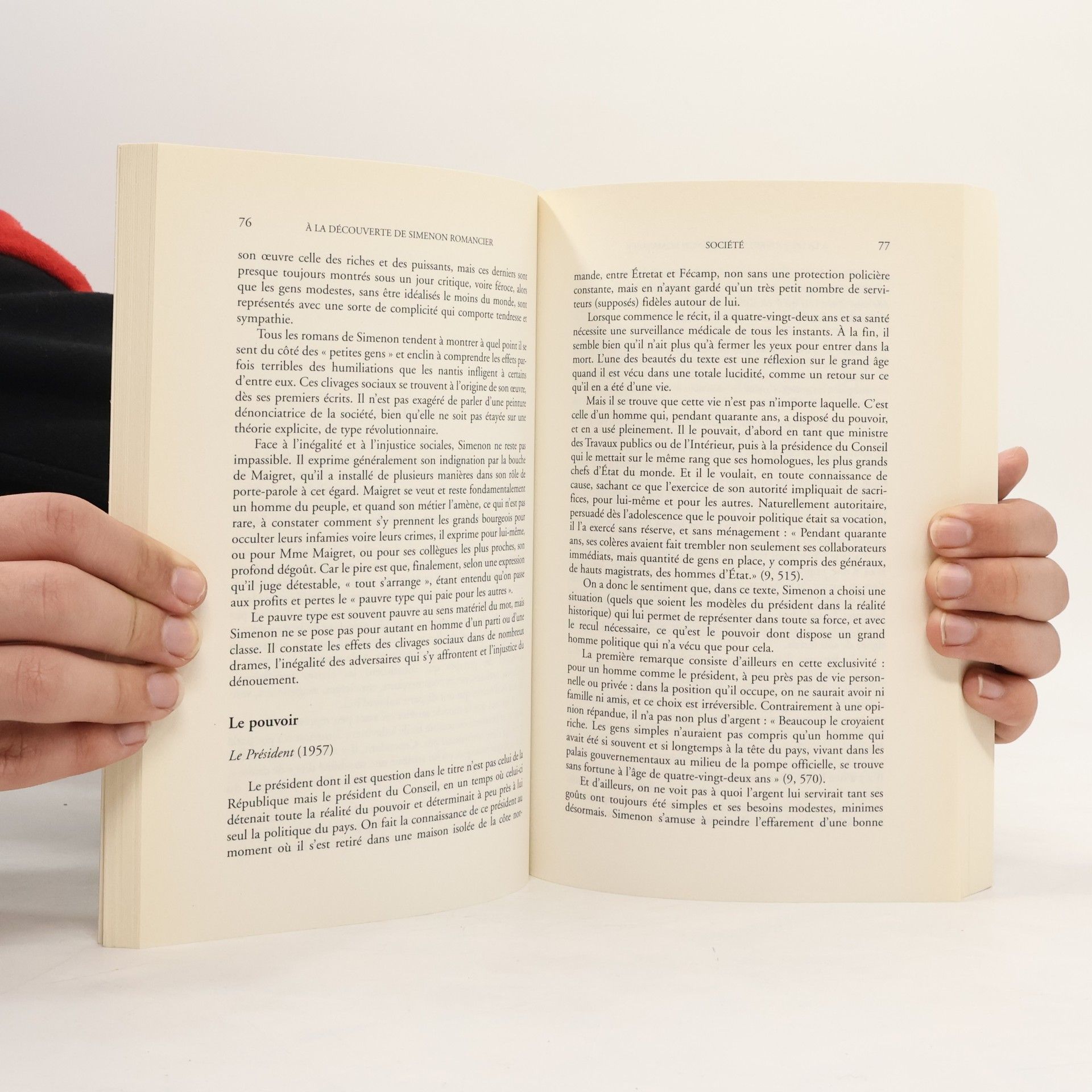 Tout le monde a lu Simenon et connat le commissaire Maigret. Et pourtant, n'est-ce pas un leurre que de se fier ces premires approches et aux dclarations tonitruantes, voire provocatrices, de l'auteur lui-mme En lisant ses romans de trs prs, on fait quelques dcouvertes inattendues, d'autant plus prcieuses qu'elles rvlent la profondeur d'un crivain rput facile d'accs. On verra dans ce livre quel point Simenon est imprgn par la lecture des romanciers qui sont ses prcurseurs ou ses contemporains. Peu port sur le roman historique, il crit plutt dans les marges de l'Histoire, au plus prs de la vie des gens. Incroyable dfil de toutes les catgories sociales jusqu' la plus humble, celle des clochards, pour lesquels il prouve une vritable fascination. Fascin aussi par l'insaisissable sexualit qui n'est pas sans rapport avec la folie, il les explore l'une et l'autre en se tondant sur une connaissance approfondie de la psychiatrie. Cependant, il la sait aussi insuffisante qu'indispensable, et invitablement dforme par la machine judiciaire. C'est pourquoi il l'inclut dans une exploration plus vaste et proprement romanesque. Et tout cela sur le ton le plus naturel du monde, qui s'avre la plus subtile des feintes. Tant il est vrai que, chez Simenon aussi, le rel est un effet de l'art. Lire ses romans, c'est traverser les apparences, non s'y complaire. Qu'on en fasse l'essai : le rsultat est impressionnant.