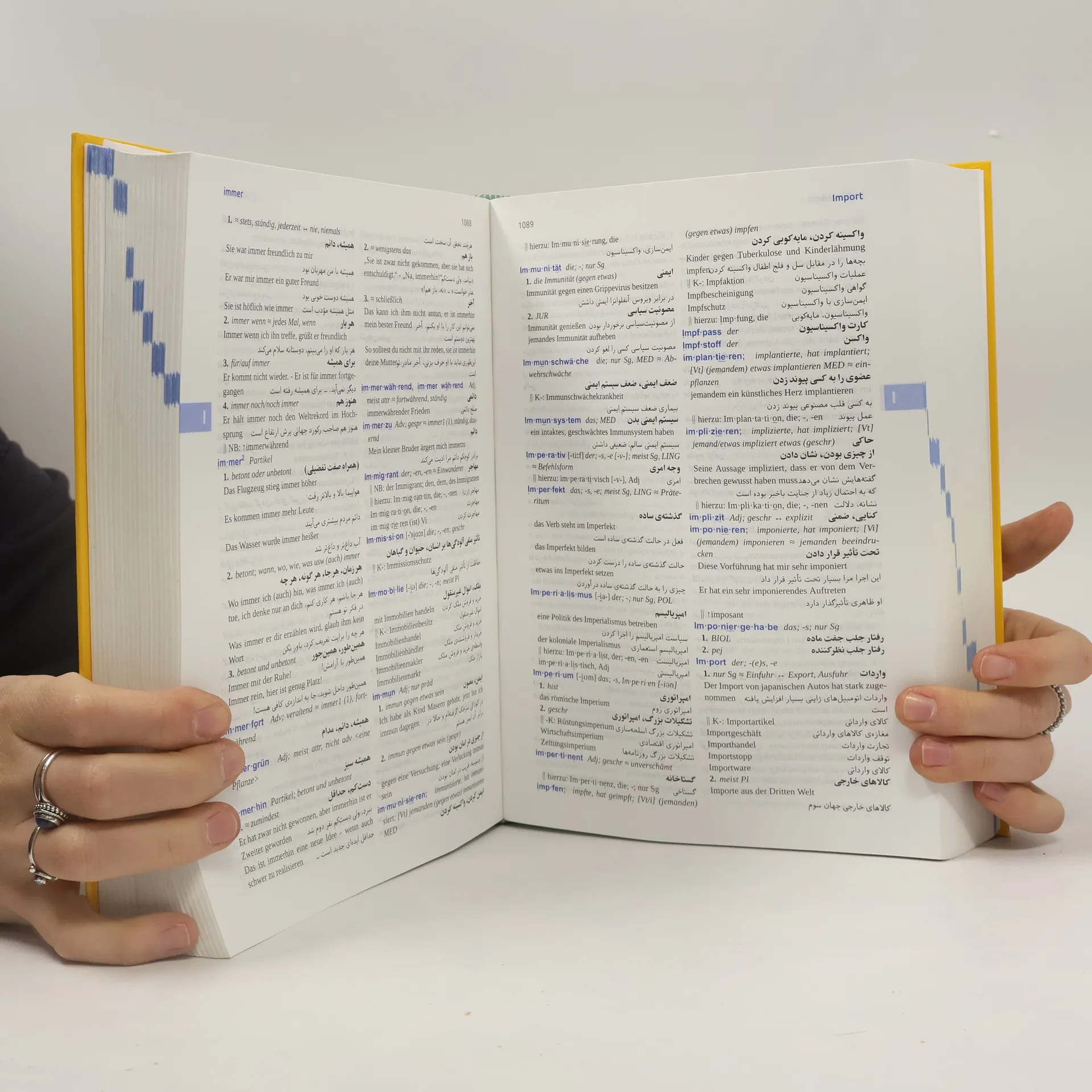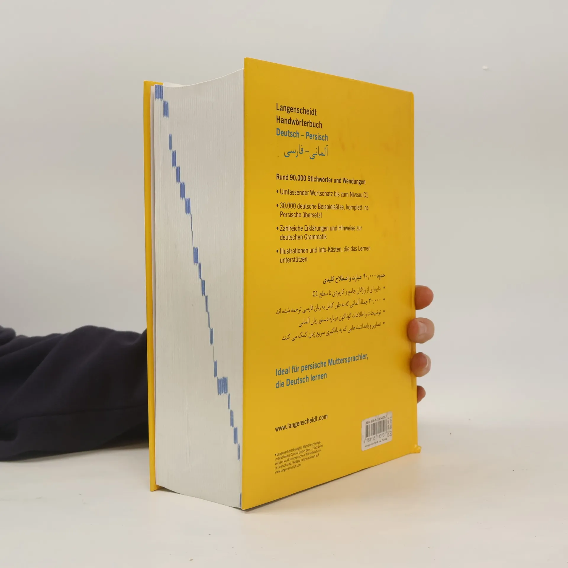 Das einzige große DaF-Wörterbuch für alle persischen Muttersprachler! Deutsch lernen leicht gemacht: Umfassender Wortschatz für den Alltag mit den wichtigsten Fachbegriffen und sehr vielen Erklärungen zur deutschen Grammatik. Zeichnungen und Info-Kästen, die beim Lernen helfen. 60.000 deutsche Stichwörter und Komposita mit persischer Übersetzung 30.000 deutsche (Rede)Wendungen, komplett ins Persische übersetzt Mehr als 30.000 Beispielsätze, in denen das Stichwort im Satzzusammenhang zu sehen ist Sehr viele Erklärungen und Hinweise zur deutschen Grammatik, vor allem zu Deklination und Konjugation Viele Synonyme und typische deutsche Wortverbindungen Illustrationen und Info-Kästen, die das Lernen unterstützen: Landeskunde, Grammatik und Sprachgebrauch anschaulich erklärt Sehr übersichtliches, zweifarbiges Layout Der perfekte Begleiter beim Deutschlernen, von Anfang an.
