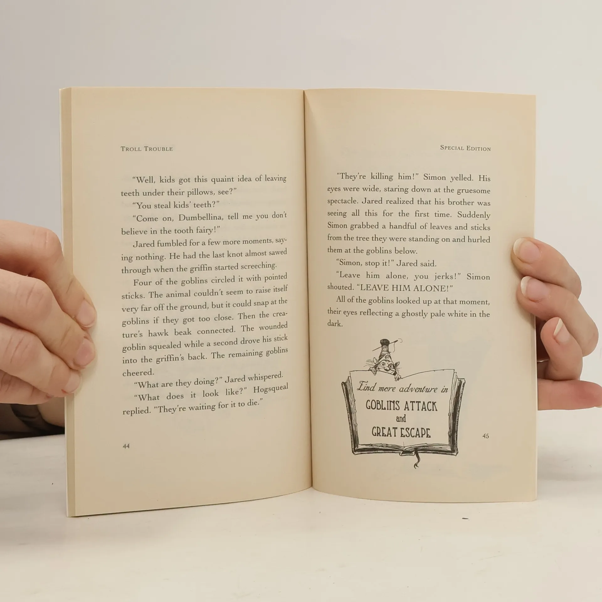 Volume 2 of Book 2 of The Spiderwick Chronicles in which Mallory, Simon and Jared ask many questions and discover the fate of the missing cat. The Grace kids are just beginning to get used to Aunt Lucinda's strange old mansion when Simon suddenly disappears. At first Mallory thinks the twins are pulling some kind of prank, but when it becomes obvious that he's been snatched by goblins, Jared and his sister, Mallory, have to rely on the help of a mischievous house boggart, a nasty bridge troll, not to mention a loudmouthed hobgoblin, to get Simon back (and uncover why he was snatched in the first place). With the aid of a seeing stone the true nature of the secret world around them is now revealed. It's important the Grace kids tell their story but the faeries will do everything to stop them...