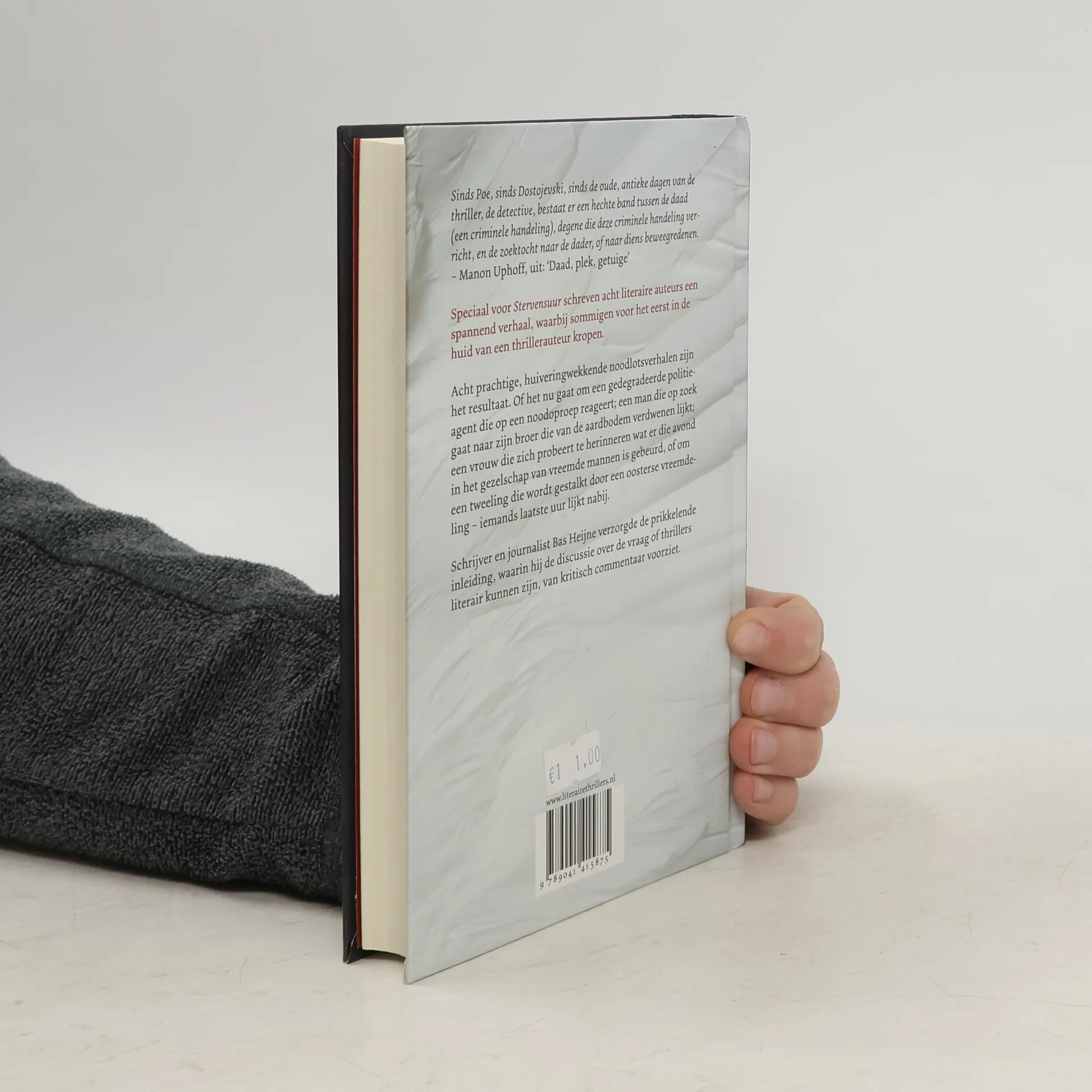'Sinds Poe, sinds Dostojevski, sinds de oude, antieke dagen van de thriller, de detective, bestaat er een hechte band tussen de daad (een criminele handeling), degene die deze criminele handeling verricht, en de zoektocht naar de dader, of naar diens beweegredenen.' – Manon Uphoff, 'Daad, plek, getuige'In de afgelopen tien jaar heeft Anthos|Literaire Thrillers laten zien dat de grens tussen thrillers en literatuur een denkbeeldige is. Speciaal voor Stervensuur schreven acht literaire auteurs een spannend verhaal, waarbij sommige voor het eerst in de huid van een thrillerauteur kropen. Bas Heijne verzorgde de inleiding van deze bijzondere bundel, en voorziet de discussie over de vraag of thrillers literair kunnen zijn van kritisch commentaar.
