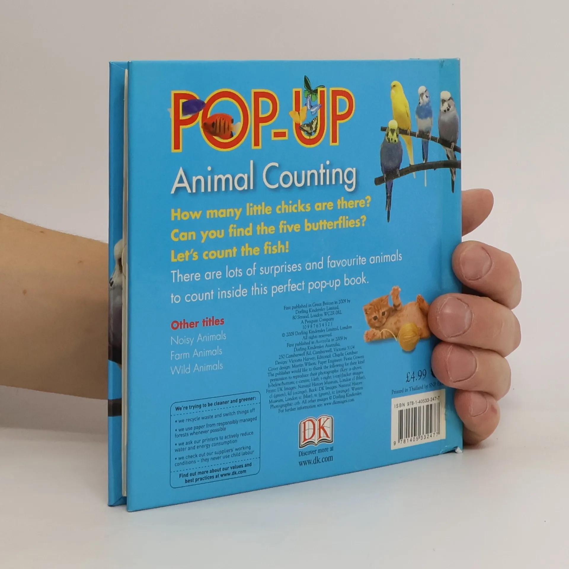 There are lots of surprises and playful animals to count inside this perfect pop-up book for toddlers Read this together with your child and count the animals together. They'll love the five photographic pop-up scenes introducing them to numbers and animals from a playful kitten to chirpy chicks and bright budgies. Bold type and simple text encourage early vocabulary, counting, sorting and memory skills, and the sturdy design is tough enough for any toddler.