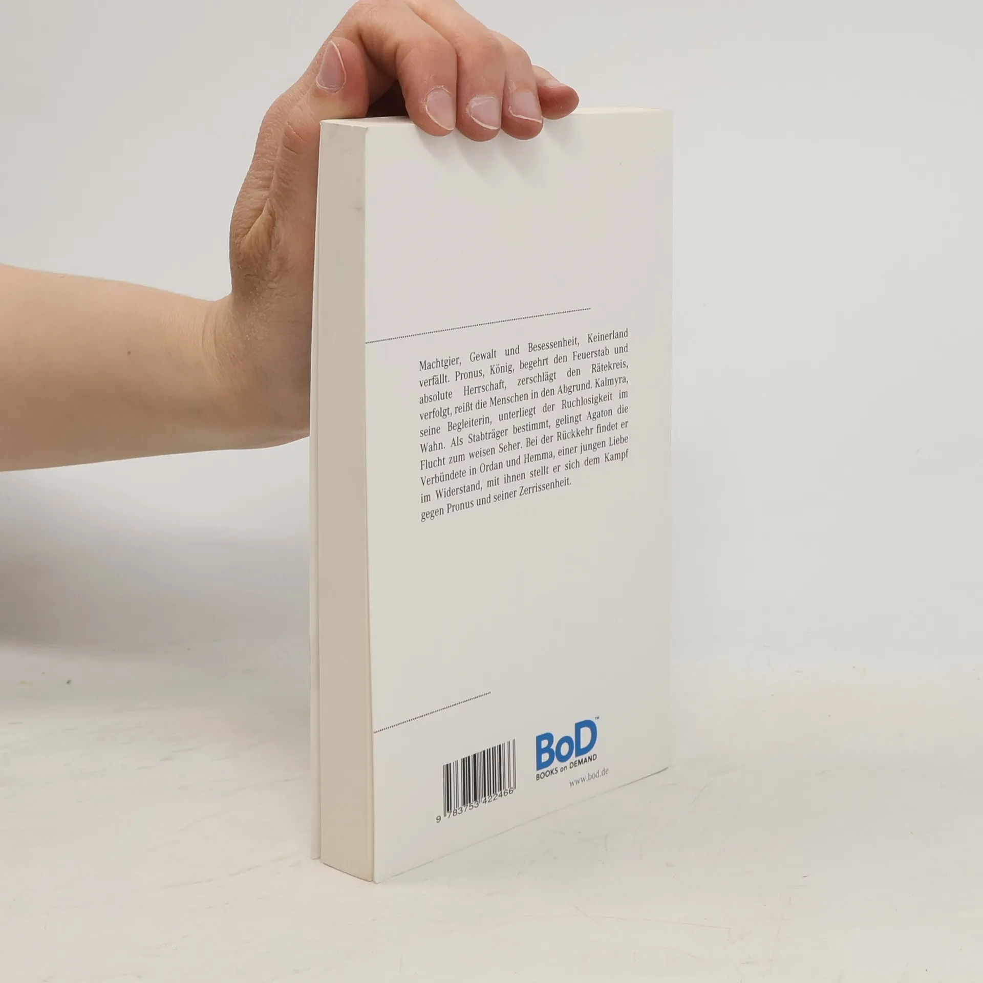 In einer Welt, die von Machtgier und Gewalt geprägt ist, strebt König Pronus nach absoluter Herrschaft und zerstört den Rätekreis. Seine Begleiterin Kalmyra wird von Wahnsinn und Ruchlosigkeit ergriffen. Agaton, der als Stabträger auserkoren wurde, gelingt die Flucht zu einem weisen Seher. Bei seiner Rückkehr schart er Verbündete um sich, darunter Ordan und die junge Hemma, die eine Liebe im Widerstand repräsentiert. Gemeinsam stellen sie sich dem tyrannischen Pronus und kämpfen gegen seine Zerrissenheit.