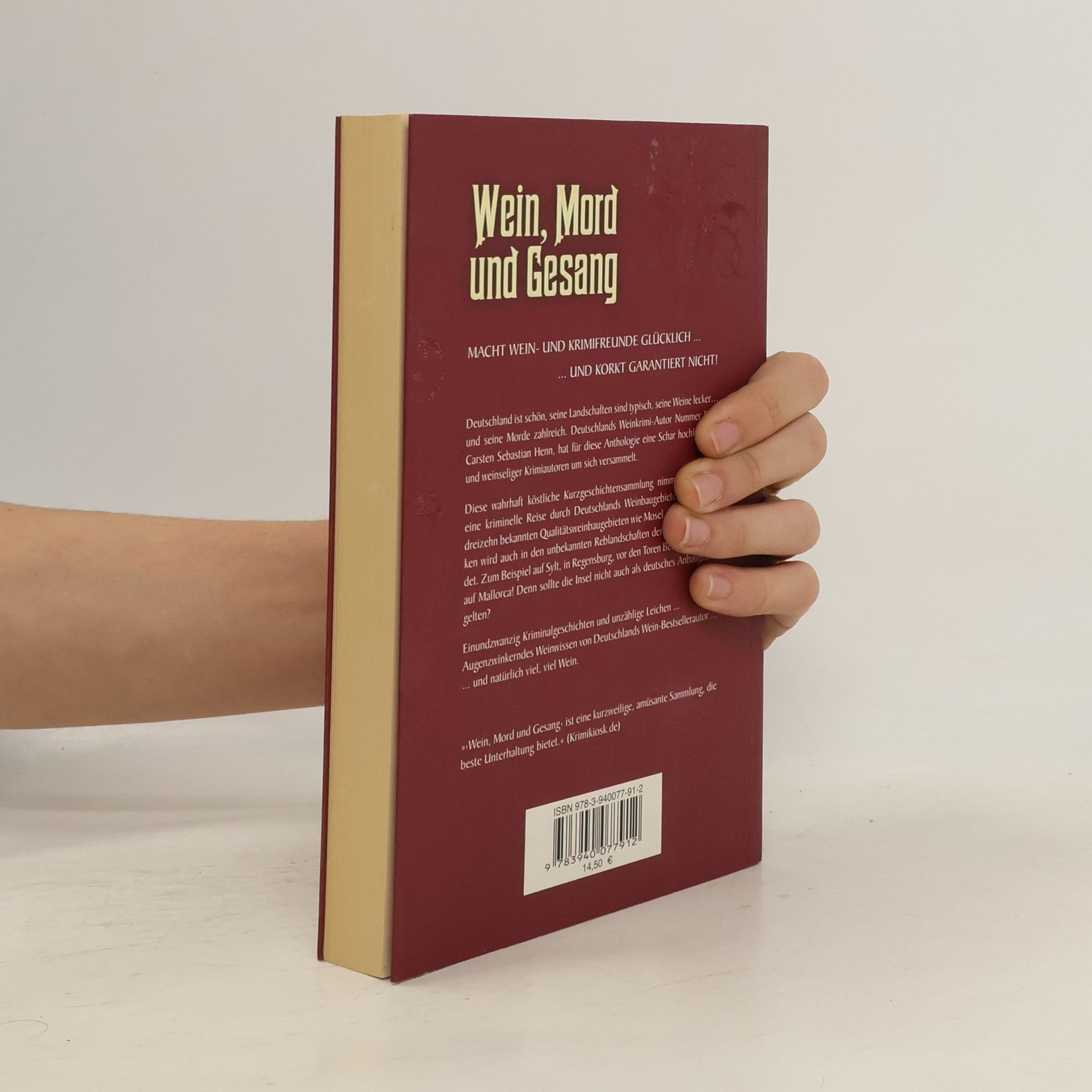 Deutschland ist schön, seine Landschaften sind typisch, seine Weine lecker... und seine Morde zahlreich. Deutschlands Weinkrimi-Autor Nummer Eins, Carsten Sebastian Henn, hat für diese Anthologie eine Schar hochklassiger und weinseliger Krimiautoren um sich versammelt. Diese wahrhaft köstliche Kurzgeschichtensammlung nimmt Sie mit auf eine kriminelle Reise durch Deutschlands Weinbaugebiete. Neben den dreizehn bekannten Qualitätsweinbaugebieten wie Mosel, Pfalz oder Franken wird auch in den unbekannten Reblandschaften der Republik gemordet. Zum Beispiel auf Sylt, in Regensburg, vor den Toren Berlins und sogar auf Mallorca! Denn sollte die Insel nicht auch als deutsches Anbaugebiet gelten? Einundzwanzig Kriminalgeschichten und unzählige Leichen ... Augenzwinkerndes Weinwissen von Deutschlands Wein-Bestsellerautor ... und natürlich viel, viel Wein. Der mehrfach ausgezeichnete Kölner Autor Carsten Sebastian Henn (* 1973) gilt als 'Deutschlands König des kulinarischen Krimis' (WDR). Seine Reihe um den Ahrtaler Koch und Meisterdetektiv Julius Eichendorff hat mehr als 100.000 Exemplare verkauft und erscheint auch in Hörbuchform, gelesen vom Entertainer und Kabarettisten Jürgen von der Lippe. 2008 erschien sein neuester Roman 'Tod Trüffel - Ein Hundekrimi' aus dem Piemont und hielt sich wochenlang in der Bestseller-Liste.