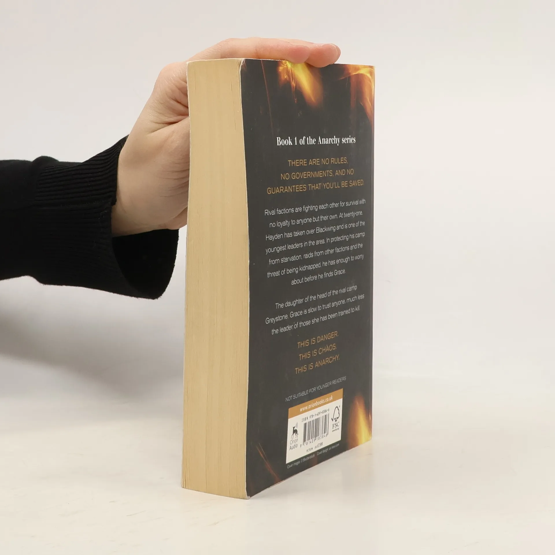 The world is different now. There are no rules, no governments, and no guarantees that you'll be saved.Rival factions have taken over, fighting each other for survival with no loyalty to anyone but their own. At 21, Hayden has taken over Blackwing and is one of the youngest leaders in the area. In protecting his camp from starvation, raids from other factions and the threat of being kidnapped, he has enough to worry about before he finds Grace. The daughter of the head of the rival camp Greystone, she is slow to trust anyone, much less the leader of those she has been trained to kill. This is danger. This is chaos. This is anarchy.