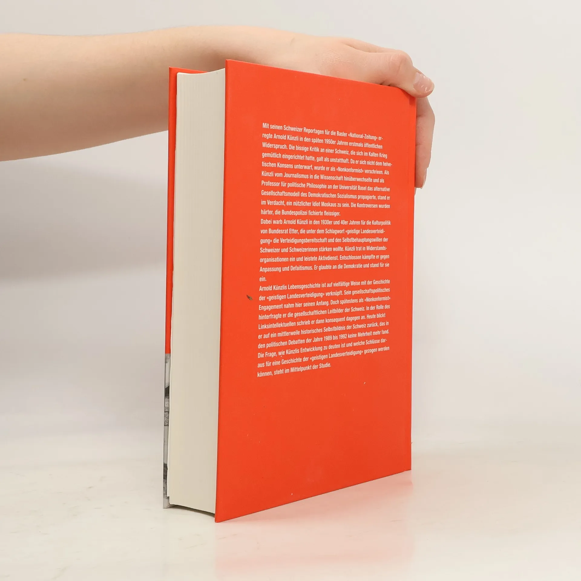 Arnold Künzli erregte in den späten 1950er Jahren mit seinen Reportagen für die Basler 'National-Zeitung' öffentliches Aufsehen. Seine scharfe Kritik an einer Schweiz, die sich im Kalten Krieg eingerichtet hatte, wurde als unstatthaft angesehen. Nonkonformisten wurden stigmatisiert. Als Künzli vom Journalismus in die Wissenschaft wechselte und als Professor für politische Philosophie den demokratischen Sozialismus propagierte, wurde er verdächtigt, ein nützlicher Idiot Moskaus zu sein. Die Auseinandersetzungen mit den Verteidigern der alten Ordnung intensivierten sich, und die Bundespolizei überwachte ihn verstärkt. In den 1930er und 40er Jahren setzte sich Künzli für die Kulturpolitik von Bundesrat Etter ein, die die Verteidigungsbereitschaft der Schweizer fördern sollte. Er kämpfte aktiv gegen Anpassung und Defätismus und glaubte fest an die Demokratie. Künzlis Lebensgeschichte ist eng mit der 'geistigen Landesverteidigung' verknüpft, und sein gesellschaftspolitisches Engagement fand hier seinen Ursprung. Er setzte sich immer wieder mit den bestehenden Vorstellungen auseinander und blickt heute auf ein historisches Selbstbild der Schweiz zurück, das in den Debatten von 1989 bis 1992 an Überzeugungskraft verlor. Die Studie beleuchtet, was Künzli zeitlebens antrieb, wie sein Denken einzuordnen ist und warum er sich vom alten Konsens abwandte.