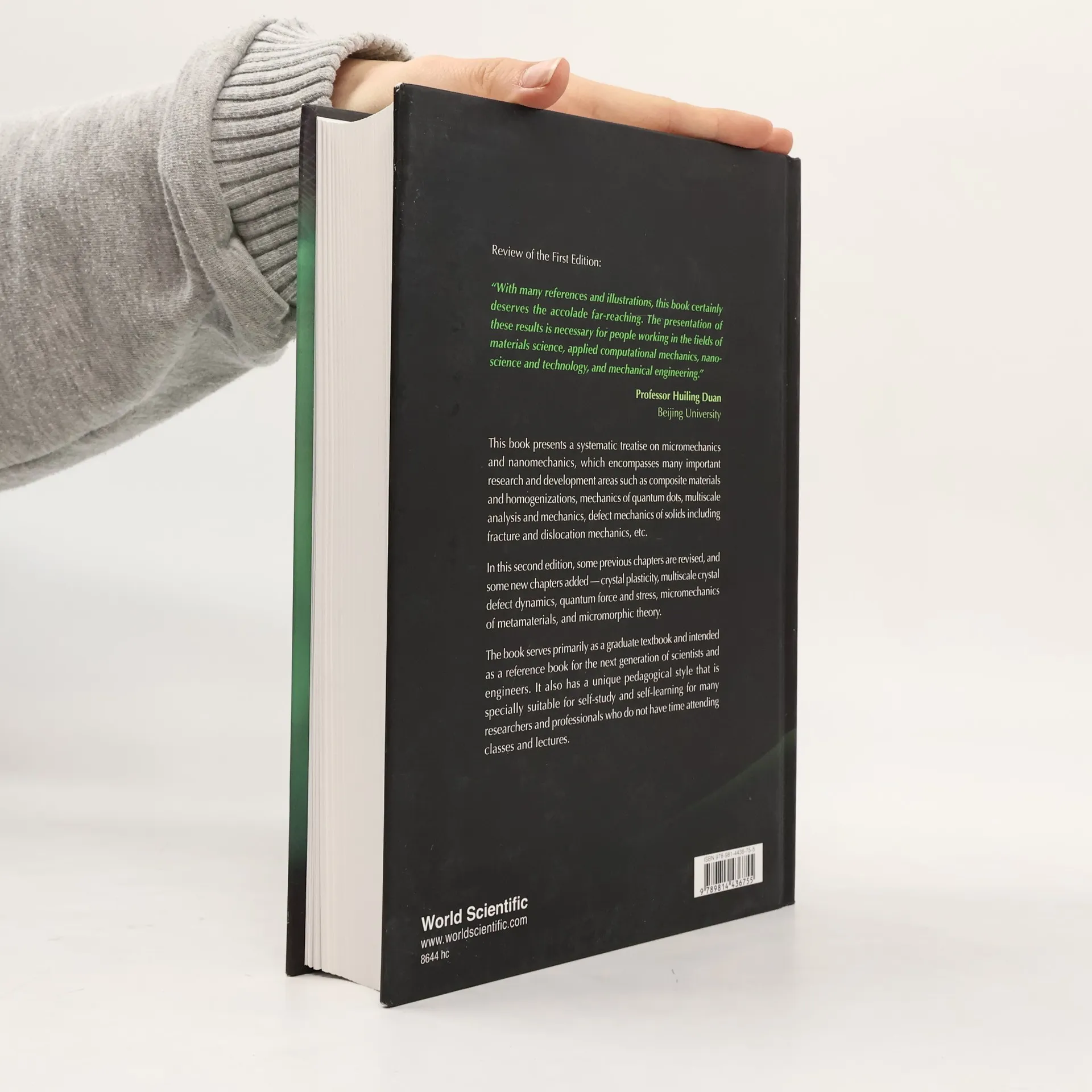 This book presents a systematic treatise on micromechanics and nanomechanics, which encompasses many important research and development areas such as composite materials and homogenizations, mechanics of quantum dots, multiscale analysis and mechanics, defect mechanics of solids including fracture and dislocation mechanics, etc.In this second edition, some previous chapters are revised, and some new chapters added — crystal plasticity, multiscale crystal defect dynamics, quantum force and stress, micromechanics of metamaterials, and micromorphic theory.The book serves primarily as a graduate textbook and intended as a reference book for the next generation of scientists and engineers. It also has a unique pedagogical style that is specially suitable for self-study and self-learning for many researchers and professionals who do not have time attending classes and lectures.