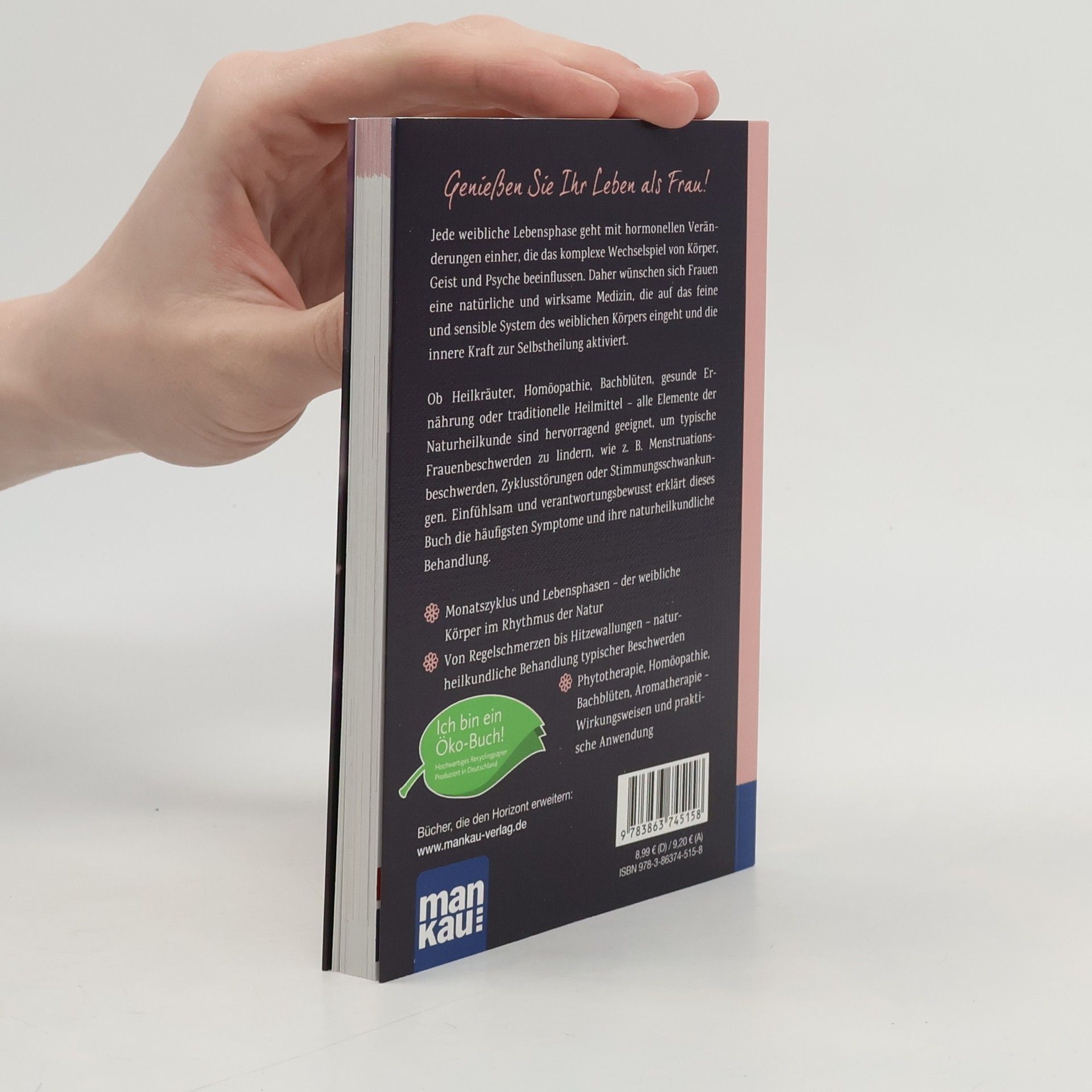 Genießen Sie Ihr Leben als Frau! Jede weibliche Lebensphase geht mit hormonellen Veränderungen einher, die das komplexe Wechselspiel von Körper, Geist und Psyche beeinflussen. Daher wünschen sich Frauen eine natürliche und wirksame Medizin, die auf das feine und sensible System des weiblichen Körpers eingeht und die innere Kraft zur Selbstheilung aktiviert. Ob Heilkräuter, Homöopathie, Bachblüten, gesunde Ernährung oder traditionelle Heilmittel - alle Elemente der Naturheilkunde sind hervorragend geeignet, um typische Frauenbeschwerden zu lindern, wie z. B. Menstruationsbeschwerden, Zyklusstörungen oder Stimmungsschwankungen. Naturmedizin wirkt regulierend und ist dabei gut verträglich. Einfühlsam und verantwortungsbewusst erklärt dieses Buch die häufigsten Symptome und ihre naturheilkundliche Behandlung. Der Praxisteil zeigt, welche Anwendungen möglich und welche Therapien am wirkungsvollsten sind. Für jeden Lebensabschnitt gibt es dazu die besten Naturheilverfahren im Überblick - mit vielen persönlichen Hinweisen und Tipps der Autorin. * Monatszyklus und Lebensphasen - der weibliche Körper im Rhythmus der Natur * Von Regelschmerzen bis Hitzewallungen - naturheilkundliche Behandlung typischer Beschwerden * Phytotherapie, Homöopathie, Bachblüten, Aromatherapie - Wirkungsweisen und praktische Anwendung