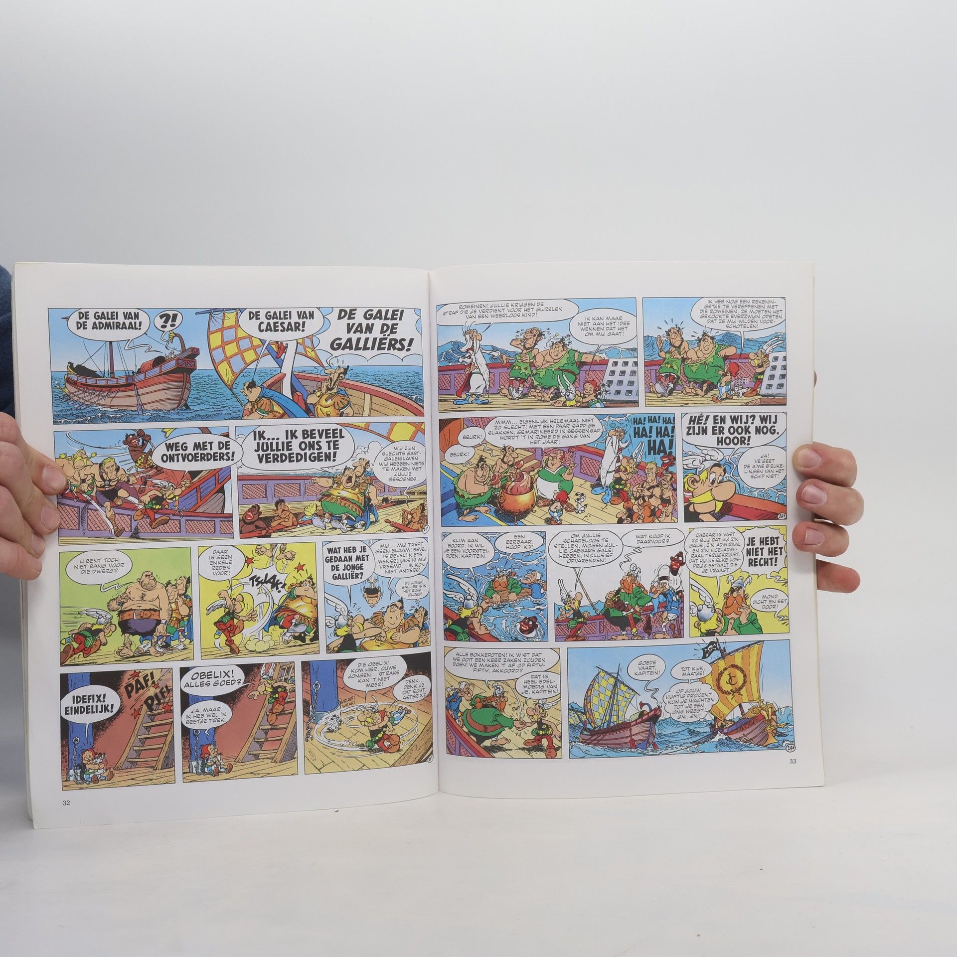 In ancient Rome, the slaves are rebelling—and they've even stolen Julius Caesar's own warship, the finest in the Roman navy. Under the heroic leadership of Spartakis, the former galley slaves make for the small town where Caesar's old enemies Asterix and Obelix live. When they arrive, though, the slaves find the town in crisis because Obelix has drunk a magic potion that has turned him back into a child. Now everyone must sail to the wonderful continent of Atlantis to find a cure. But, the Romans are on the ocean blue, too.and the battles are about to come fast and furious. 8 1/2 X 11 1/4. all in color
