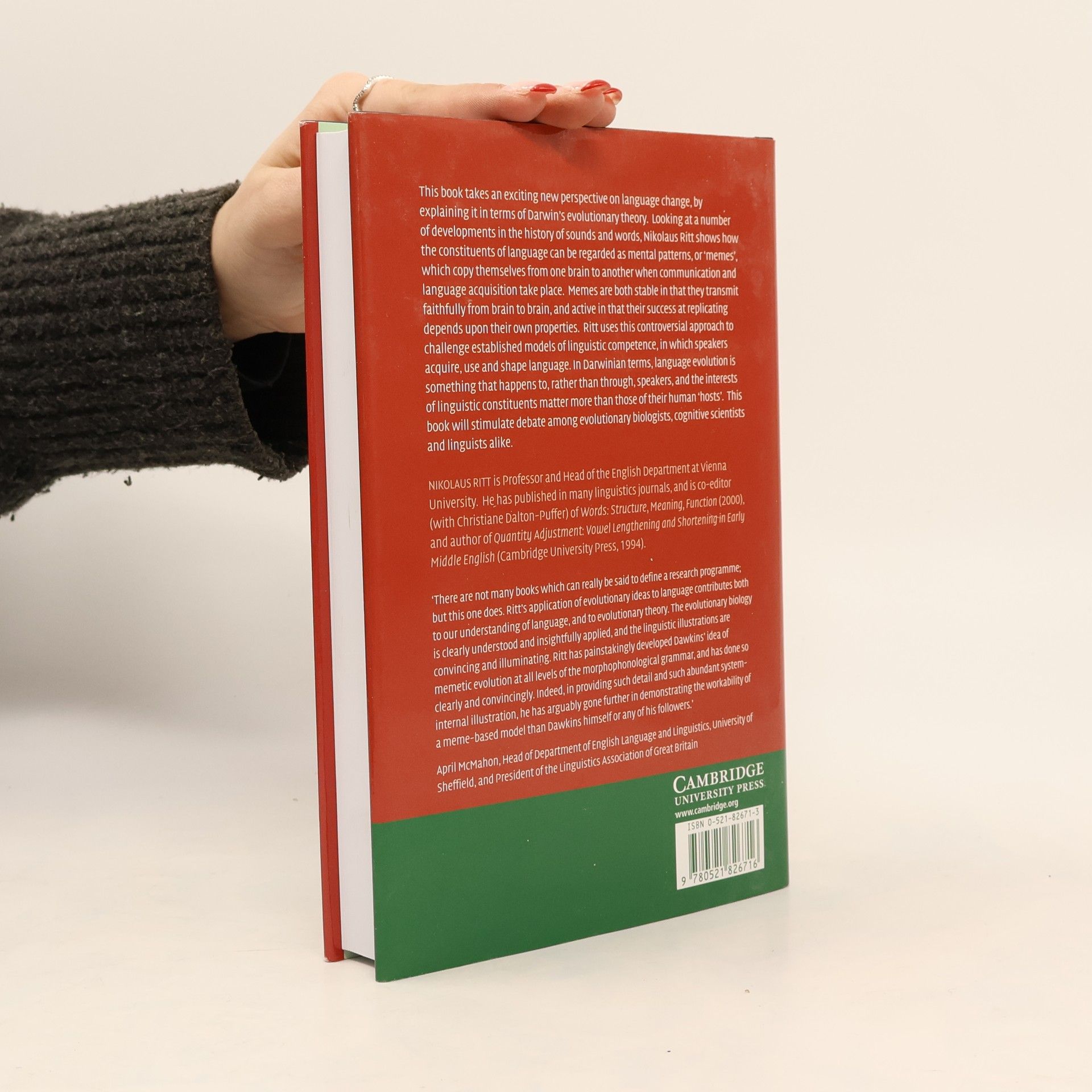 This new perspective on language change looks at a number of developments in the history of sounds and words and explains them in terms of Darwin's evolutionary theory. Nikolaus Ritt demonstrates how the constituents of language can be regarded as mental patterns, or "memes", which copy themselves from one brain to another when communication and language acquisition occur. Challenging established models of linguistic competence, Ritt's controversial approach will stimulate debate among evolutionary biologists, cognitive scientists and linguists.