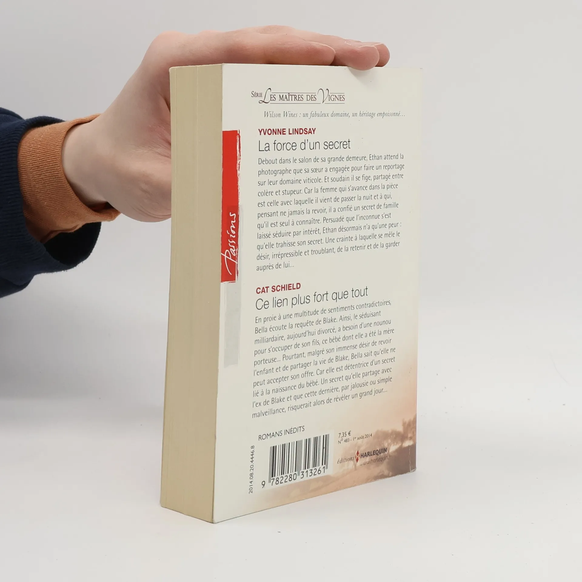 La force d'un secret, Yvonne Lindsay. Debout dans le salon de sa grande demeure, Ethan attend la photographe que sa sœur a engagée pour faire un reportage sur leur domaine viticole. Et soudain il se fige, partagé entre colère et stupeur. Car la femme qui s'avance dans la pièce est celle avec laquelle il vient de passer la nuit et à qui, pensant ne jamais la revoir, il a confié un secret de famille qu'il est seul à connaître. Persuadé que l'inconnue s'est laissé séduire par intérêt, Ethan désormais n'a qu'une peur : qu'elle trahisse son secret. Une crainte à laquelle se mêle le désir, irrépressible et troublant, de la retenir et de la garder auprès de lui... Ce roman est le 3ème tome de la série Les maîtres des vignes. Ce lien plus fort que tout, Cat Schield. En proie à une multitude de sentiments contradictoires, Bella écoute la requête de Blake. Ainsi, le séduisant milliardaire, aujourd'hui divorcé, a besoin d'une nounou pour s'occuper de son fils, ce bébé dont elle a été la mère porteuse... Pourtant, malgré son immense désir de revoir l'enfant et de partager la vie de Blake, Bella sait qu'elle ne peut accepter son offre. Car elle est détentrice d'un secret lié à la naissance du bébé. Un secret qu'elle partage avec l'ex de Blake et que cette dernière, par jalousie ou simple malveillance, risquerait alors de révéler un grand jour...