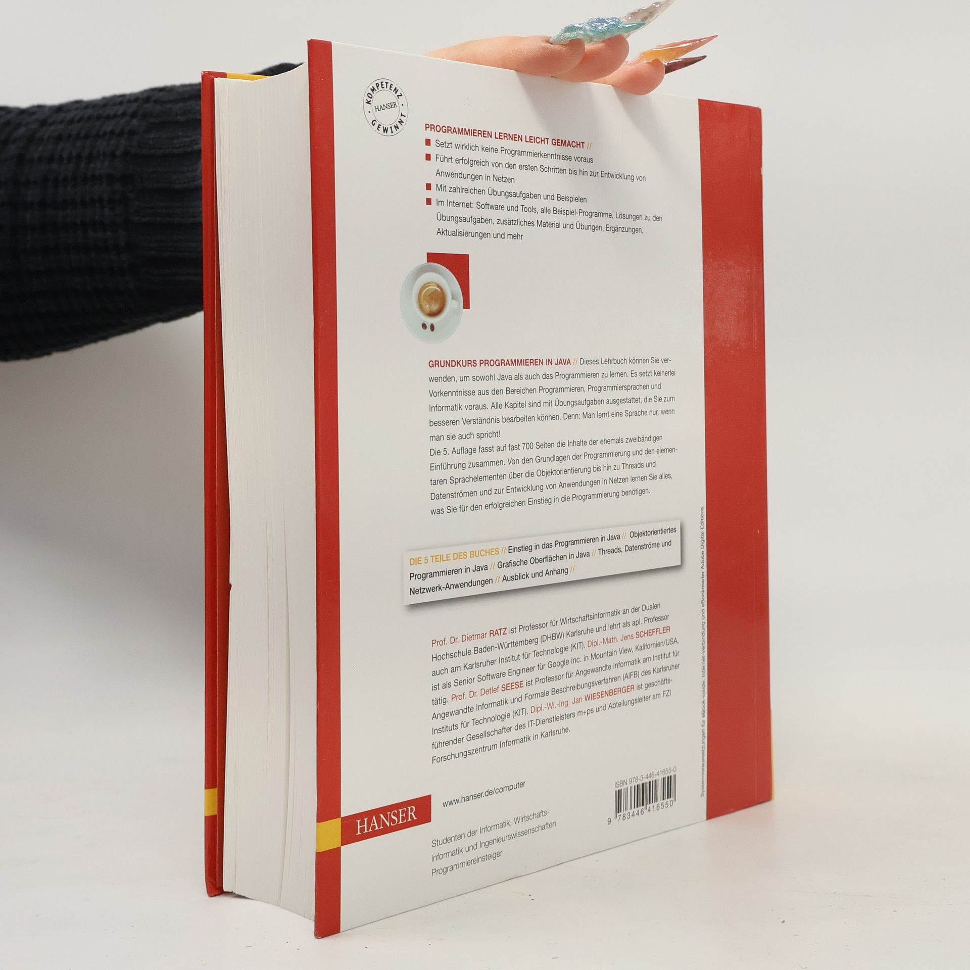 PROGRAMMIEREN LERNEN LEICHT GEMACHT - Setzt wirklich keine Programmierkenntnisse voraus - Führt erfolgreich von den ersten Schritten bis hin zur Entwicklung von Anwendungen in Netzen - Mit zahlreichen Übungsaufgaben und Beispielen - Im Internet: Software und Tools, alle Beispiel-Programme, Lösungen zu den Übungsaufgaben, zusätzliches Material und Übungen, Ergänzungen, Aktualisierungen und mehr Dieses Lehrbuch können Sie verwenden, um sowohl Java als auch das Programmieren zu lernen. Es setzt keinerlei Vorkenntnisse aus den Bereichen Programmieren, Programmiersprachen und Informatik voraus. Alle Kapitel sind mit Übungsaufgaben ausgestattet, die Sie zum besseren Verständnis bearbeiten können. Denn: Man lernt eine Sprache nur, wenn man sie auch spricht! Die 5. Auflage fasst auf fast 700 Seiten die Inhalte der ehemals zweibändigen Einführung zusammen. Von den Grundlagen der Programmierung und den elementaren Sprachelementen über die Objektorientierung bis hin zu Threads und Datenströmen und zur Entwicklung von Anwendungen in Netzen lernen Sie alles, was Sie für den erfolgreichen Einstieg in die Programmierung benötigen. Die 5 Teile des Buches : - Einstieg in das Programmieren in Java - Objektorientiertes Programmieren in Java - Grafische Oberflächen in Java - Threads, Datenströme und Netzwerk-Anwendungen - Ausblick und Anhang