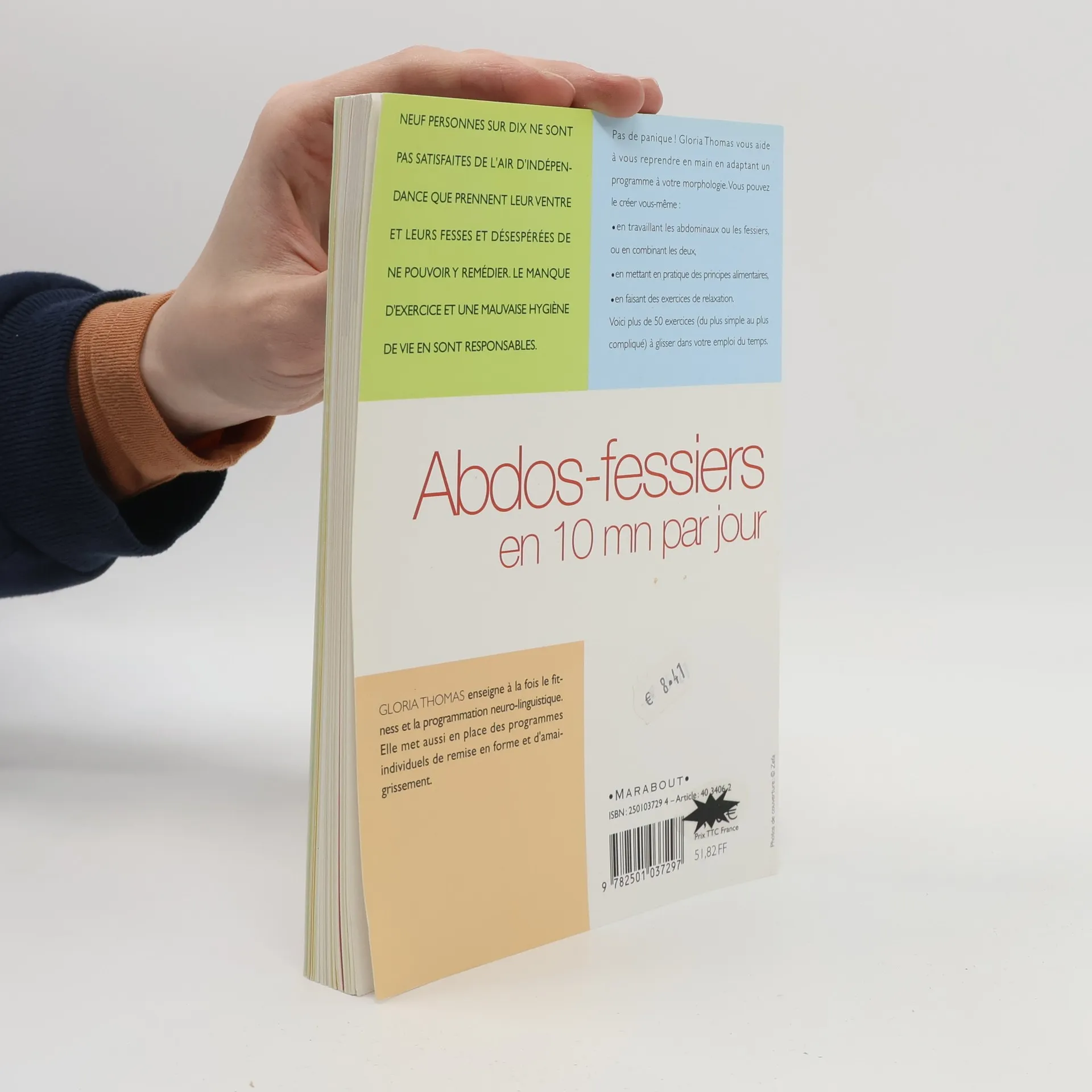 Neuf personnes sur dix ne sont pas satisfaites de l'air d'indépendance que prennent leur ventre et leurs fesses et désespérées de ne pouvoir y remédier. Le manque d'exercice et une mauvaise hygiène de vie en sont responsables. Pas de panique ! Gloria Thomas vous aide à vous reprendre en main en adaptant un programme à votre morphologie. Vous pouvez le créer vous-même : * en travaillant les abdominaux ou les fessiers, ou en combinant les deux, * en mettant en pratique des principes alimentaires, * en faisant des exercices de relaxation. Voici plus de 50 exercices (du plus simple au plus compliqué) à glisser dans votre emploi du temps.