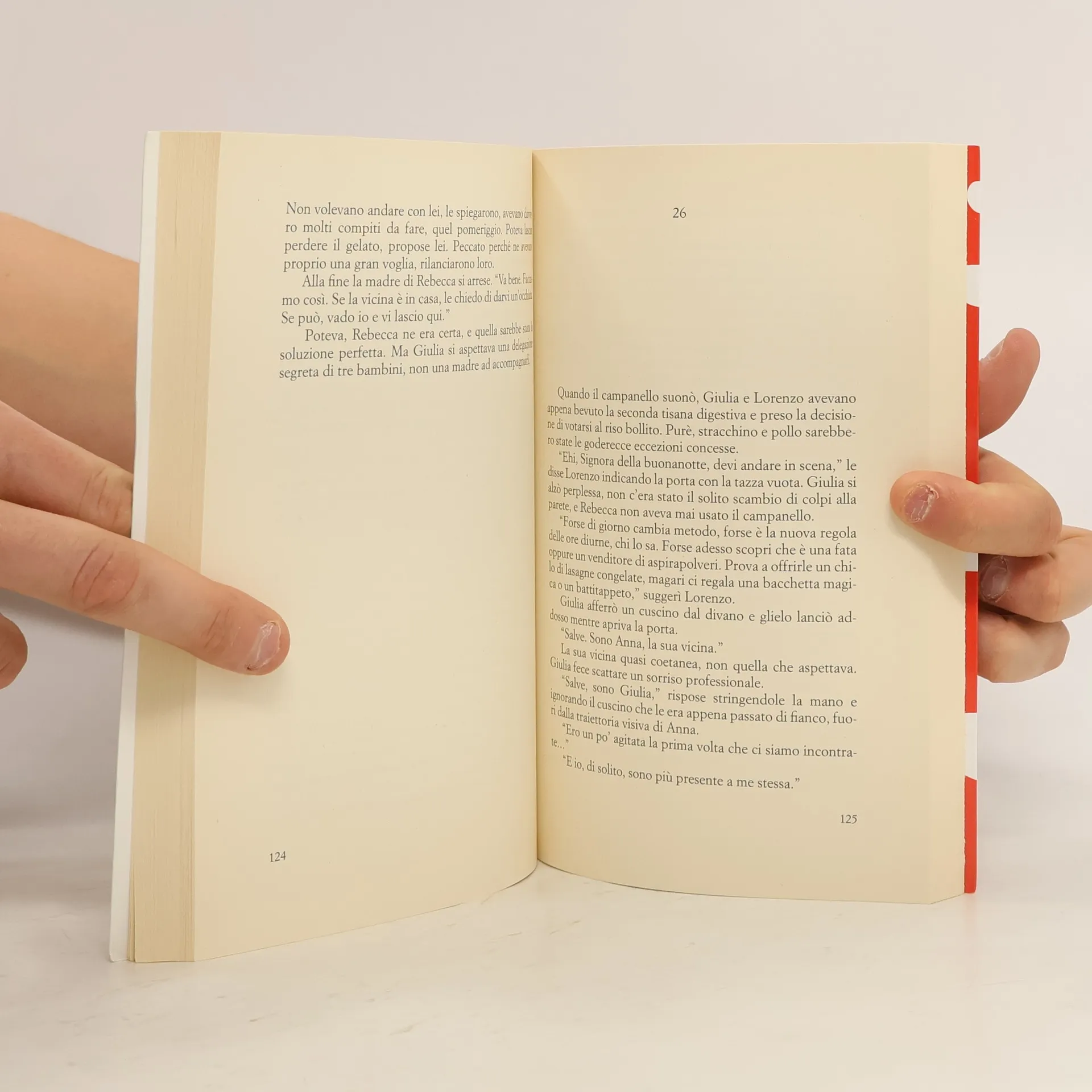 A rincasare ubriachi nel cuore della notte si rischia di inciampare in qualsiasi cosa: un gradino, i lacci delle scarpe, uno stuoino fuori posto. Ma se ti chiami Giulia, sei una pubblicitaria di successo e per te l’infanzia è solo una nicchia di mercato, puoi anche inciampare in una camicia da notte con una bambina dentro: Rebecca, la figlia della nuova vicina. Allora, tra i fumi dell’alcol, puoi persino decidere di ospitarla per una notte sul tuo divano. Salvo poi rimanere invischiata in sessioni di fiabe da raccontarle ogni volta che la madre, misteriosamente, non c’è. Da Cenerentola a Pollicino, da Raperonzolo alla Sirenetta, purché siano sempre le versioni originali: quelle di Perrault, dei Grimm e di Andersen, dove i ranocchi si trasformano in principi soltanto se li lanci contro un muro, e non sono certo i baci a risvegliare le più belle del reame. Se invece ti chiami Rebecca e sei arrivata da poco in città, puoi provare a conquistare i compagni di classe con le “fiabe vere”. Salvo poi imbatterti nelle temibili bimbe della Gilda del cerchietto, pronte a screditarti con le versioni edulcorate della Disney. E forse, nonostante i tuoi nove anni, cercherai di far capire a Giulia, la tua amica del pianerottolo, che, anche se i principi azzurri nella realtà non esistono, l’uomo giusto a volte è più vicino di quanto si pensi. Ciò che ancora non sai è che la verità costa cara. E non solo perché certe cose è meglio non raccontarle, specie quando ci sono di mezzo i segreti degli adulti. Ma anche perché in ogni storia, persino in quelle più divertenti, si nasconde un mostro. E per sconfiggerlo le parole non bastano. Per sconfiggerlo ci vuole qualcosa di vero. Giulia è una pubblicitaria scombinata. Rebecca è una bambina che non si accontenta delle solite storie. Un pianerottolo. Un incontro. E, da tenere segreto, qualcosa di vero.