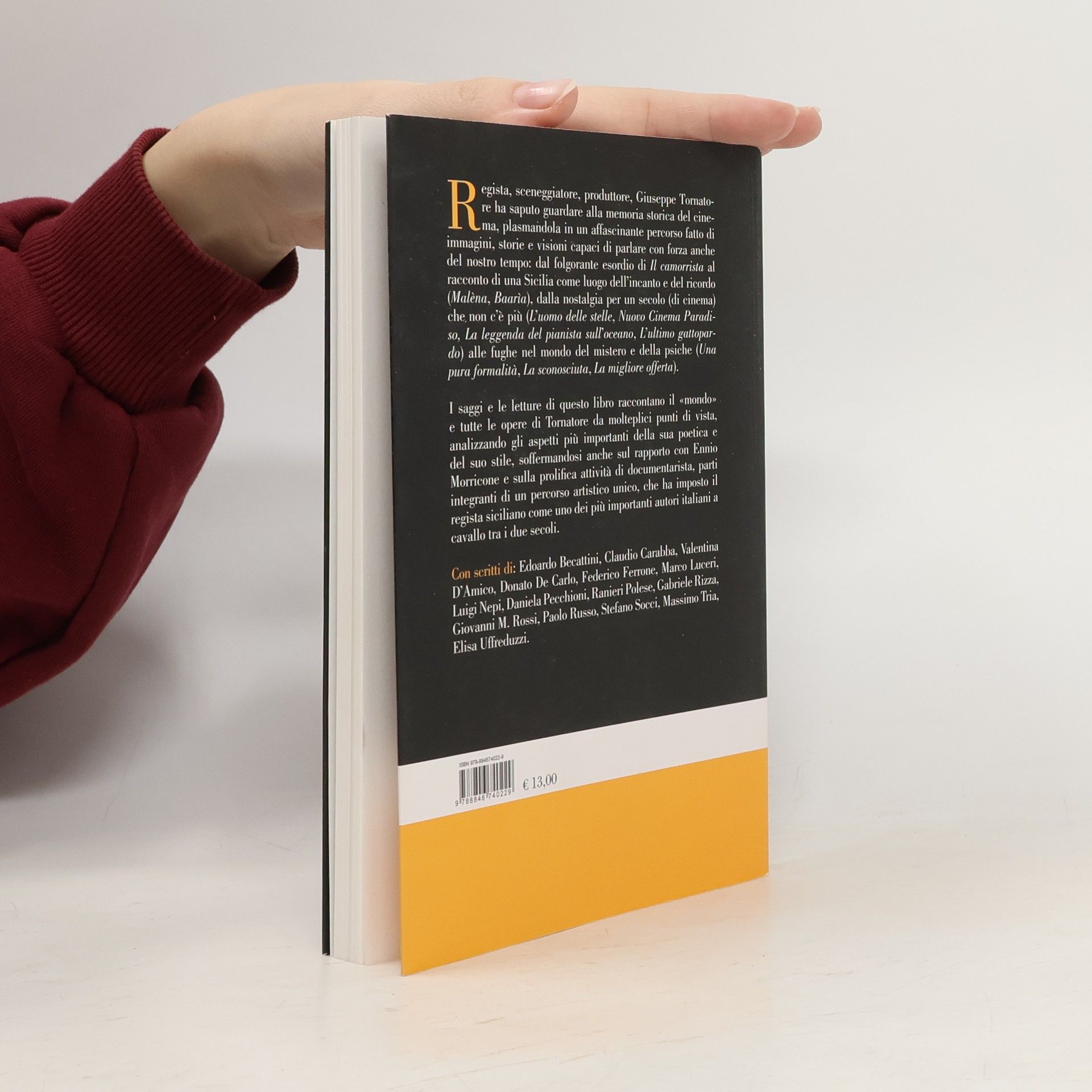 Regista, sceneggiatore, produttore, Giuseppe Tornatore ha saputo guardare alla memoria storica del cinema, plasmandola in un affascinante percorso fatto di immagini, storie e visioni capaci di parlare con forza anche del nostro dal folgorante esordio di Il camorrista al racconto di una Sicilia come luogo dell'incanto e del ricordo (Malèna, Baarìa), dalla nostalgia per un secolo (di cinema) che non c'è più (L'uomo delle stelle, Nuovo Cinema Paradiso, La leggenda del pianista sull'oceano, L'ultimo gattopardo) alle fughe nel mondo del mistero e della psiche (Una pura formalità, La sconosciuta, La migliore offerta). I saggi e le letture di questo libro raccontano il "mondo" e tutte le opere di Tornatore da molteplici punti di vista, analizzando gli aspetti più importanti della sua poetica e del suo stile, soffermandosi anche sul rapporto con Ennio Morricone e sulla prolifica attività di documentarista, parti integranti di un percorso artistico unico, che ha imposto il regista siciliano come uno dei più importanti autori italiani a cavallo tra i due secoli. Con scritti Edoardo Becattini, Claudio Carabba, Valentina D'Amico, Donato De Carlo, Federico Ferrone, Marco Luceri, Luigi Nepi, Daniela Pecchioni, Ranieri Polese, Gabriele Rizza, Giovanni M. Rossi, Paolo Russo, Stefano Socci, Massimo Tria, Elisa Uffreduzzi.