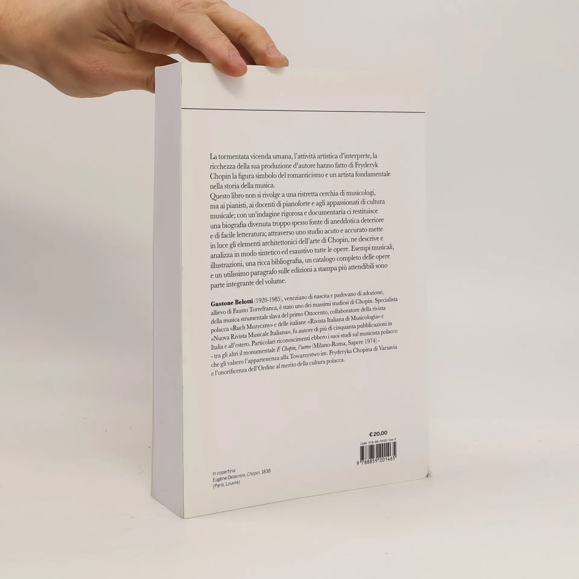 La tormentata vicenda umana, l'attività artistica d'interprete, la ricchezza della sua produzione d'autore hanno fatto di Fryderyk Chopin la figura simbolo del romanticismo e un artista fondamentale nella storia della musica. Questo libro non si rivolge a una ristretta cerchia di musicologi, ma ai pianisti, ai docenti di pianoforte e agli appassionati di cultura musicale; con un'indagine rigorosa e documentaria ci restituisce una biografia divenuta troppo spesso fonte di aneddotica deteriore e di facile letteratura; attraverso uno studio acuto e accurato mette in luce gli elementi architettonici dell'arte di Chopin, ne descrive e analizza in modo sintetico ed esaustivo tutte le opere. Esempi musicali, illustrazioni, una ricca bibliografia, un catalogo completo delle opere e un utilissimo paragrafo sulle edizioni a stampa più attendibili sono parte integrante del volume.